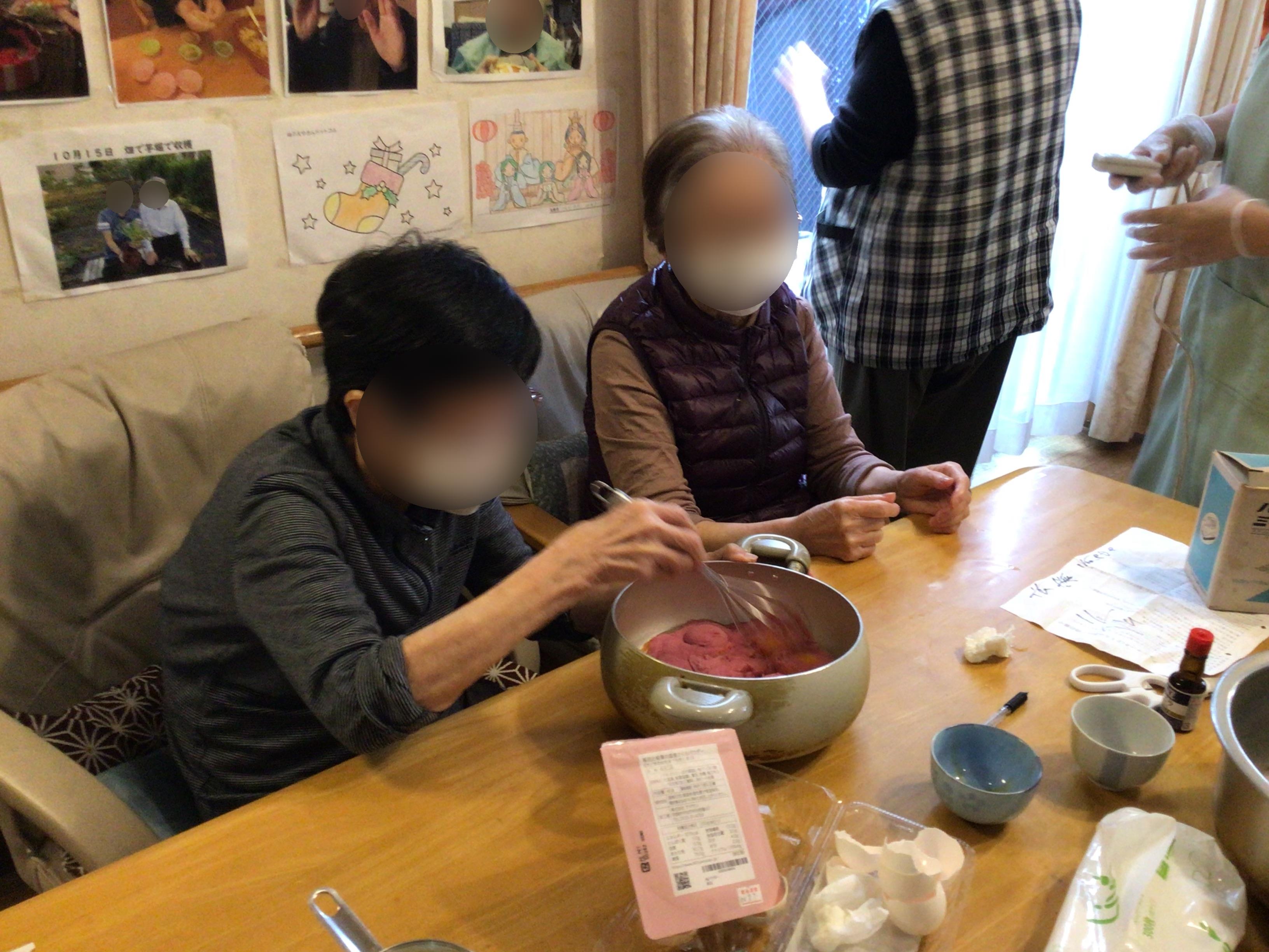 ケーキ作りの工程は真剣な表情で集中してお手伝いをして下さいました