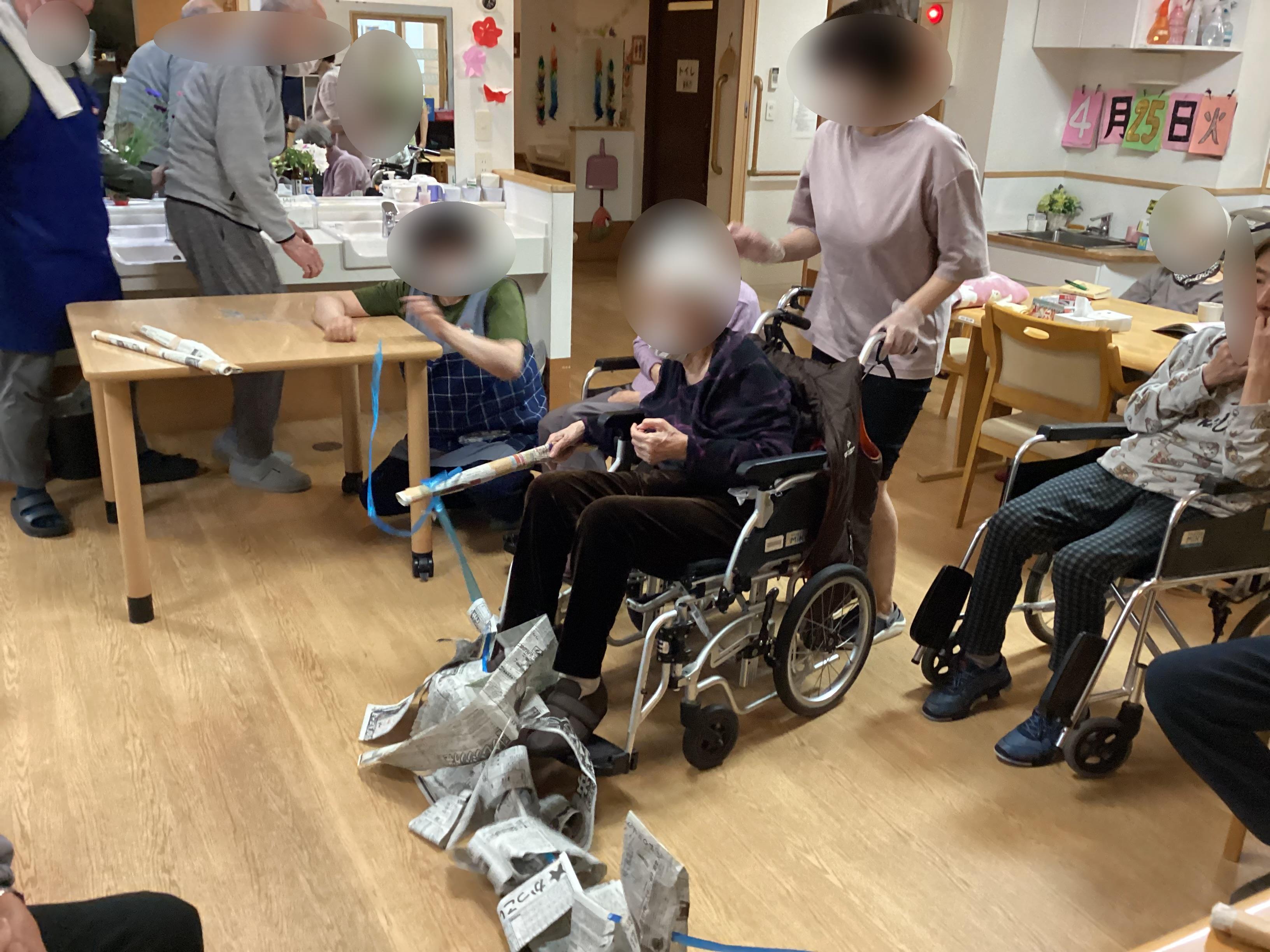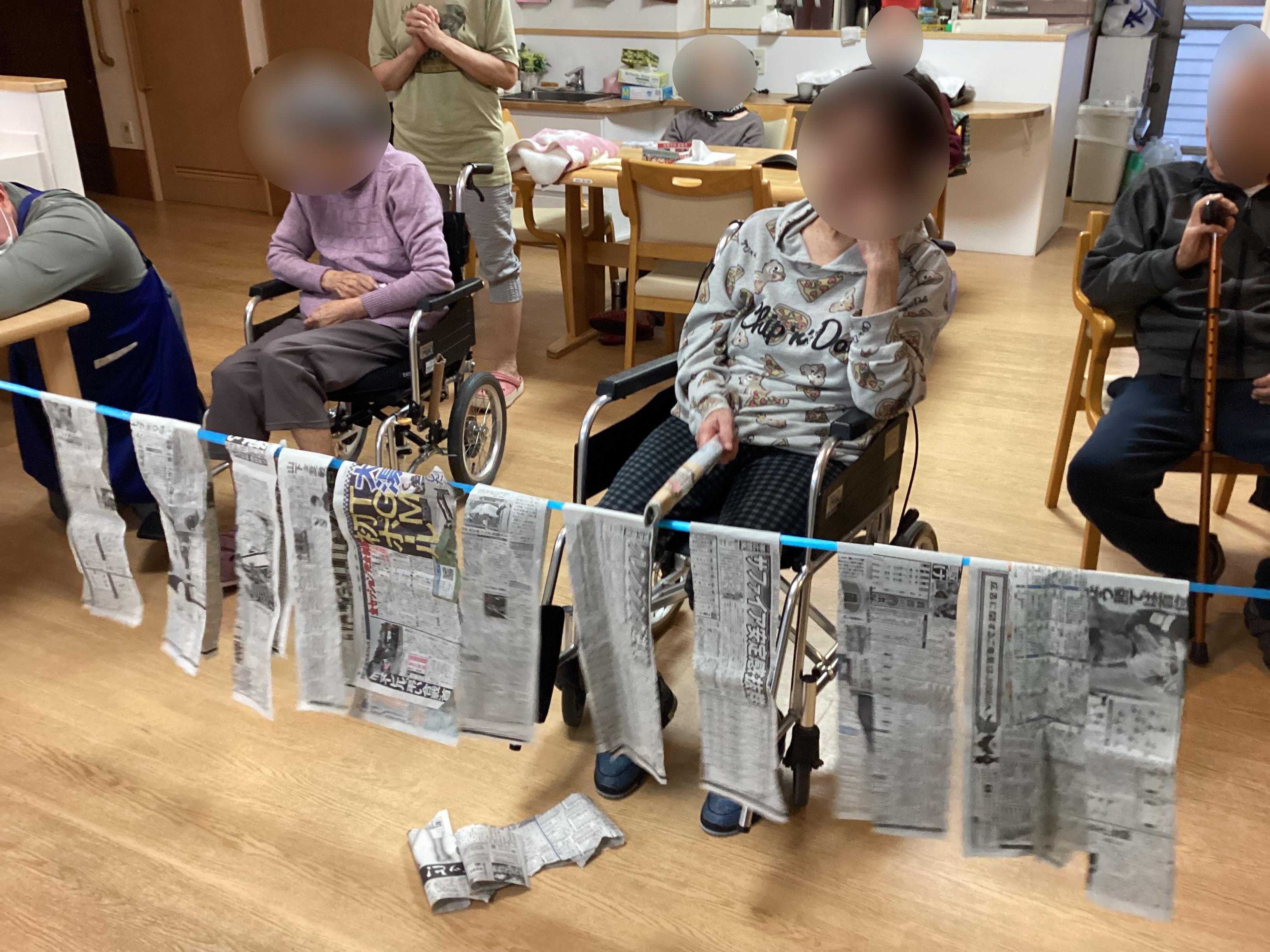 新聞の棒で新聞をたたいて落とす(^^♪ゲームとなりました
