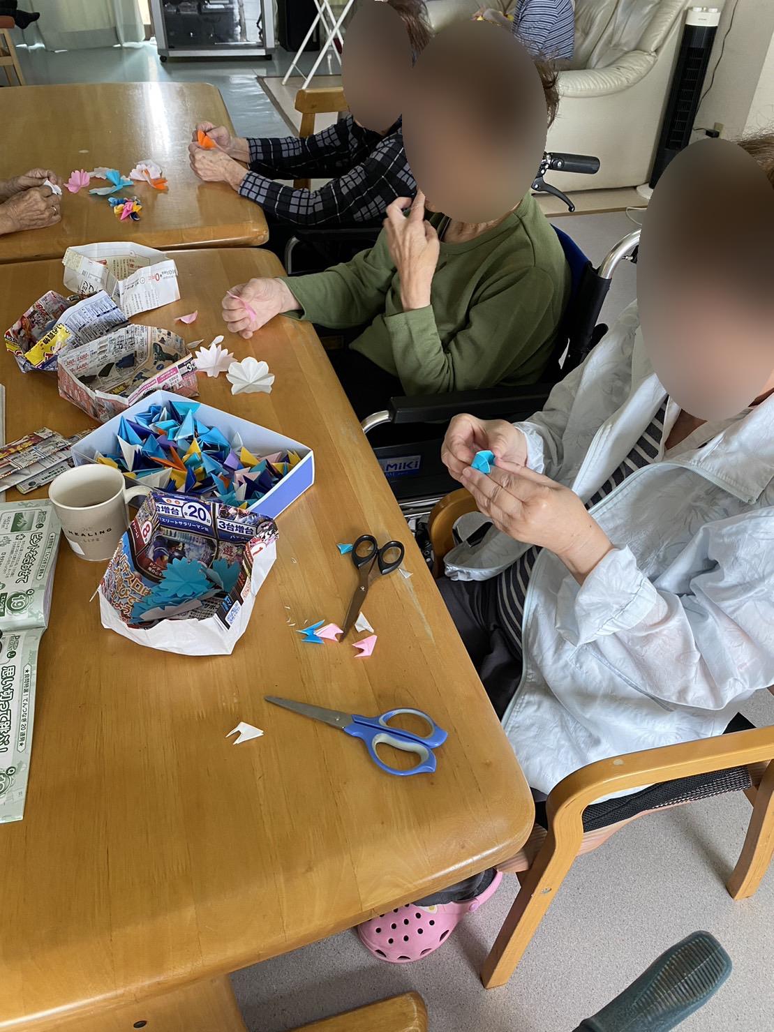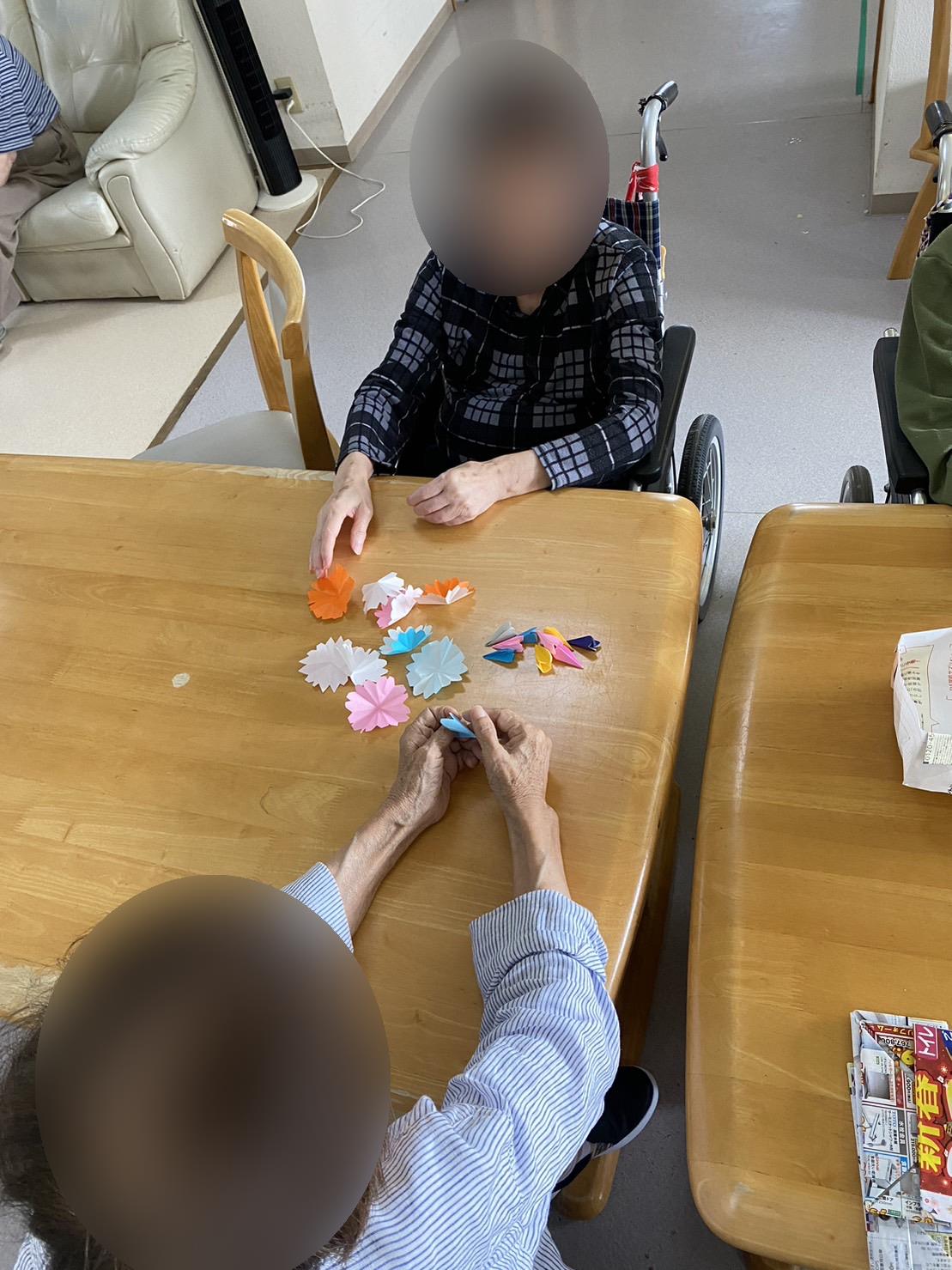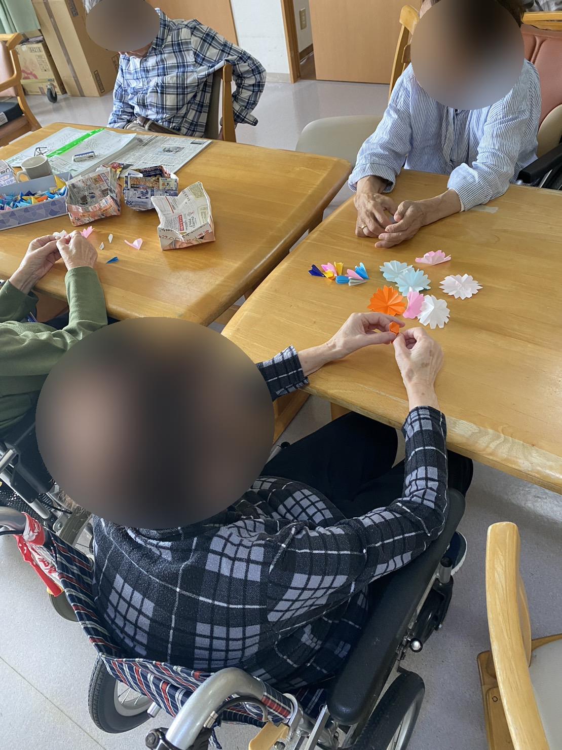 ハサミの切り方で花の形が変わるので、色々な花ができました
