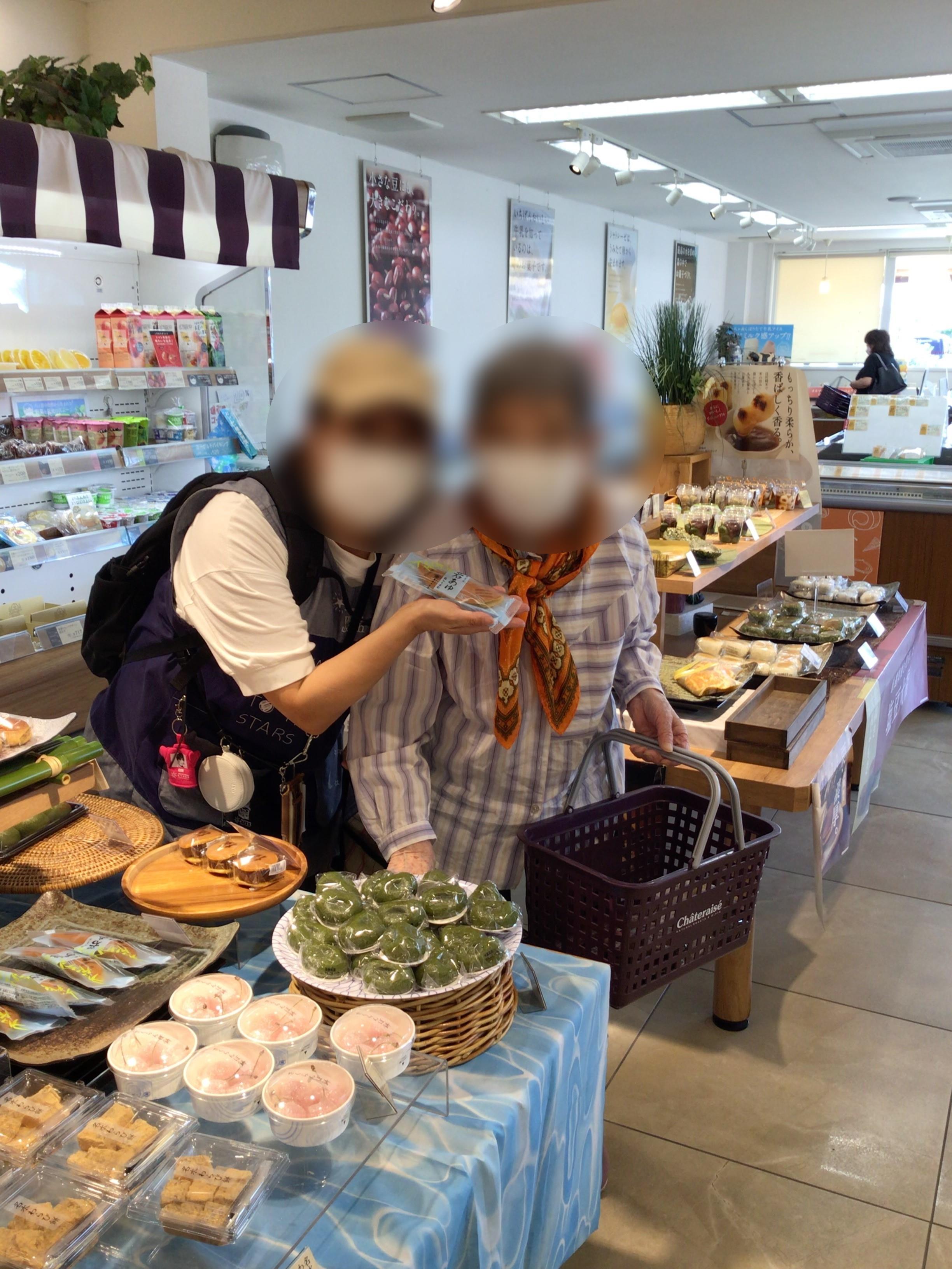 種類が沢山あり目移りしていましたが、「私はよもぎ饅頭が食べたいわ」と笑顔でカゴにin