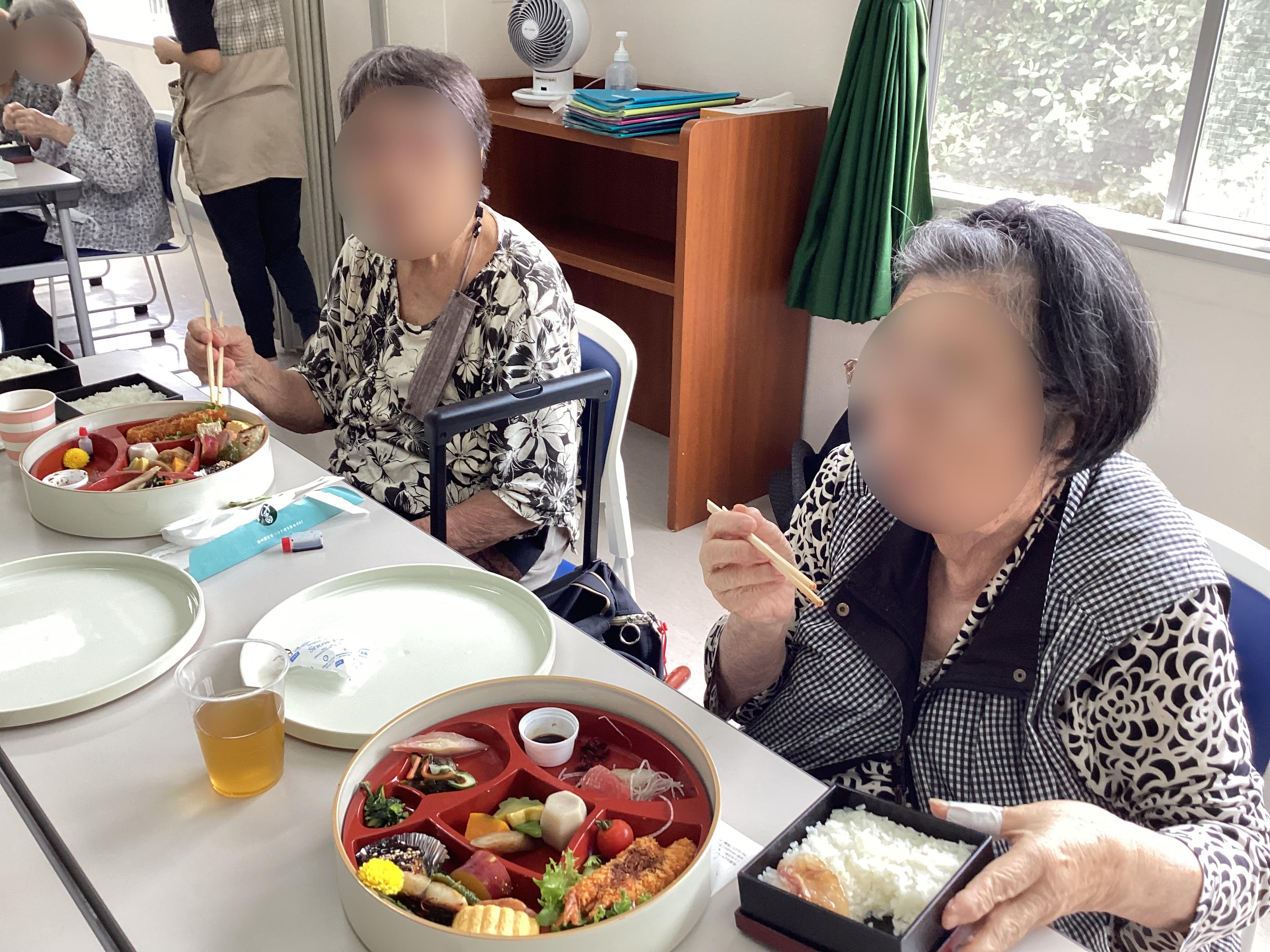 その間は、皆様公民館に移動し、八尾彦弁当を召し上がり、楽しくゲームや歌レクを行いました
