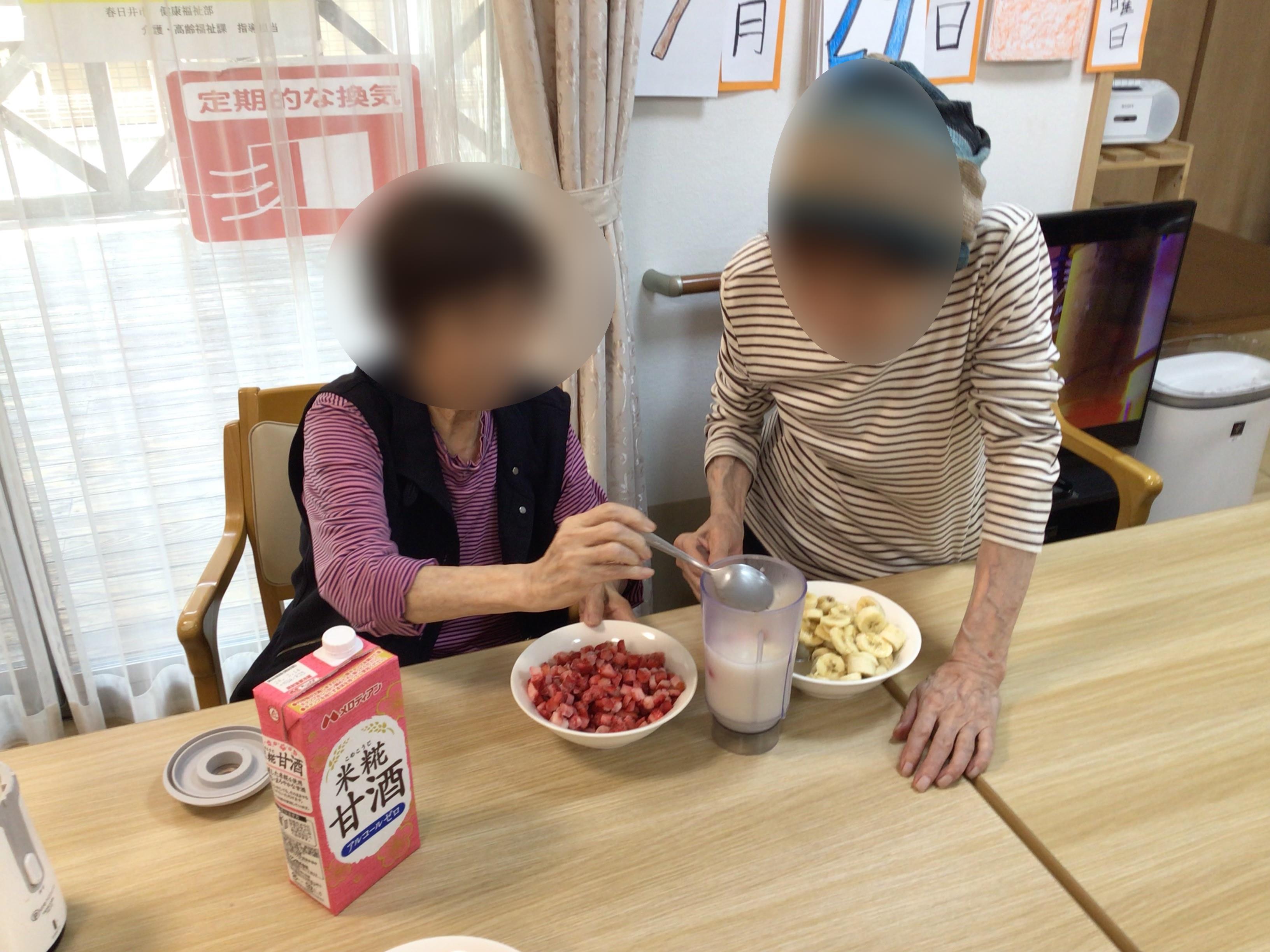 洒落た飲み物があるんだね〜。昔よく甘酒は飲んでたけど」とご利用者様試しに作ってみましょうか