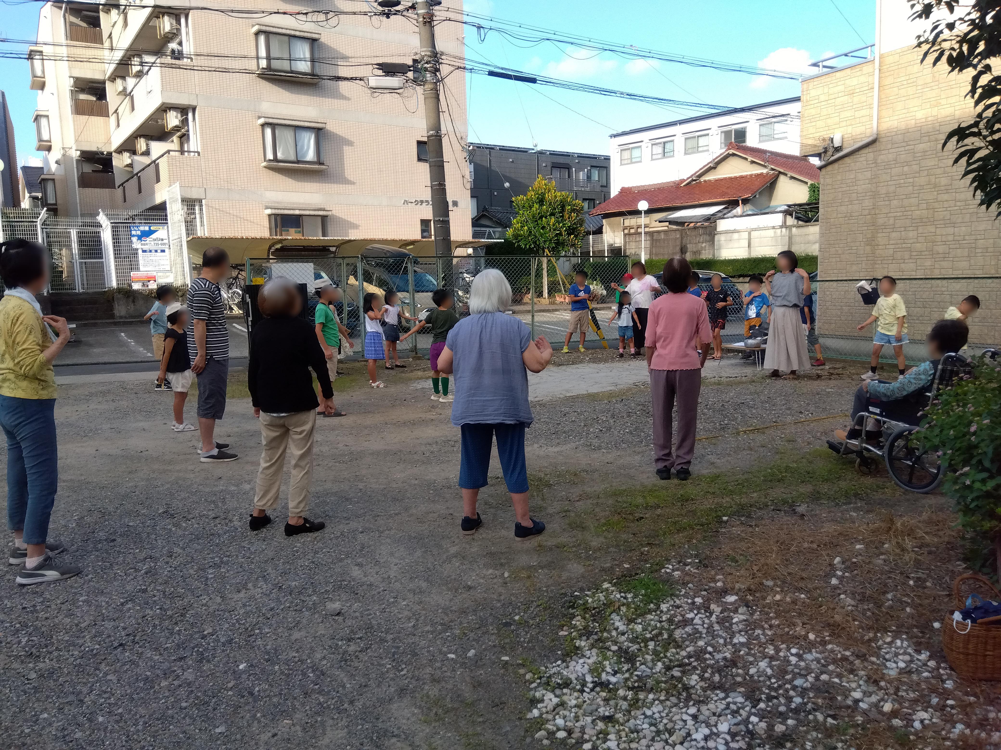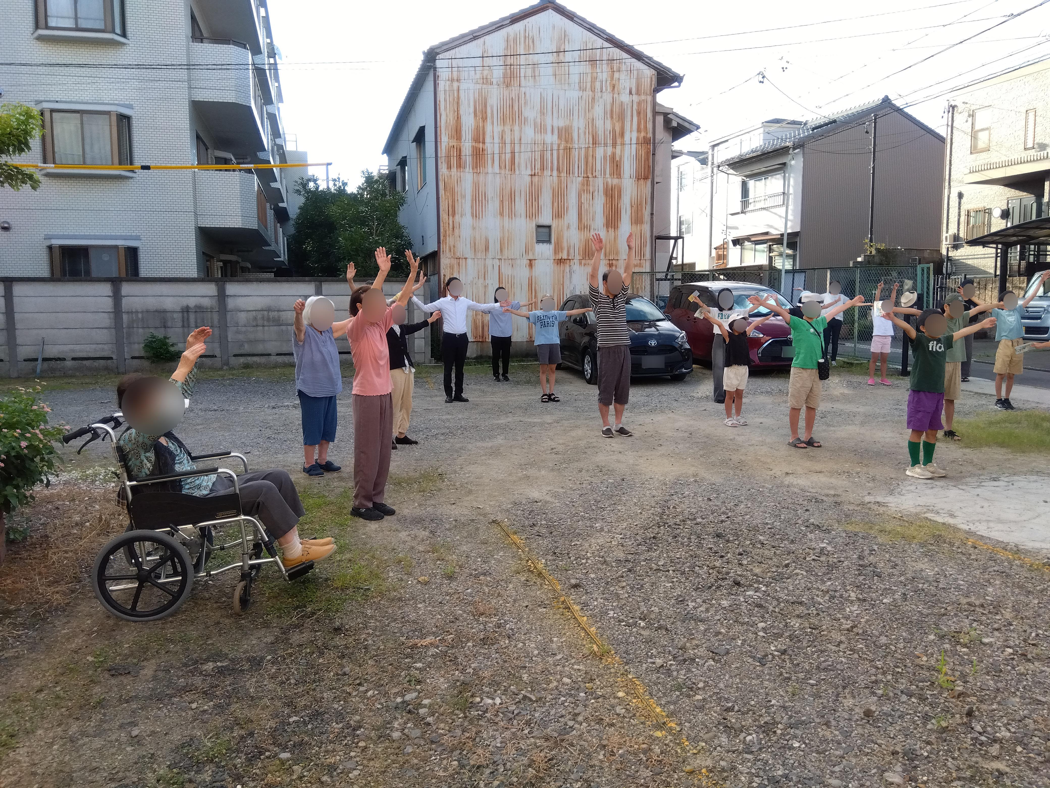 子供会の体操は、ラジオ体操第1のみでしたので、毎日第2体操を行っている「つるまい軍団」は 集まって、第2体操まで行い施設に戻りました。