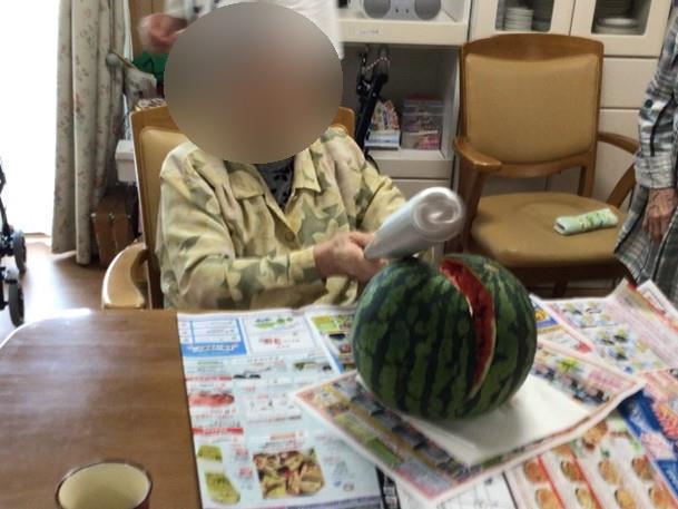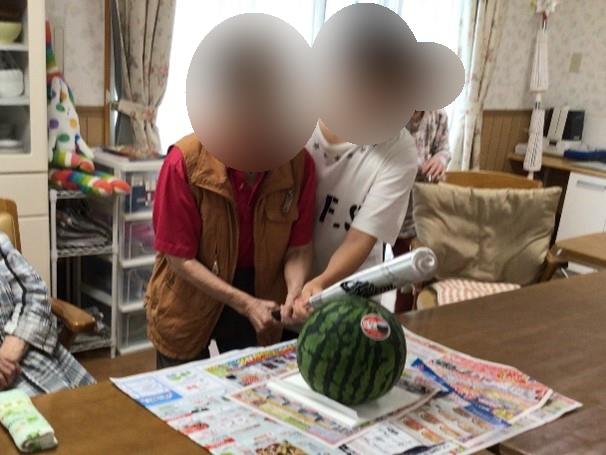 1Fのご利用者様のみなさんでスイカ割りをしました