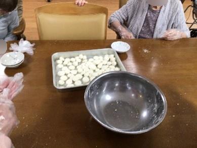 中秋の名月の日に一階フロアではご利用者様の皆様と一緒にずんだ餅をつくりました