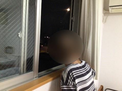 二階フロアでは夜に窓から月を眺めました