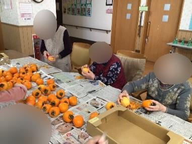 ご利用者様の皆様と一緒に干し柿を作りました
