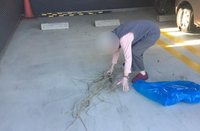 ご利用者様に施設のガレージの掃除をお手伝いいただきました