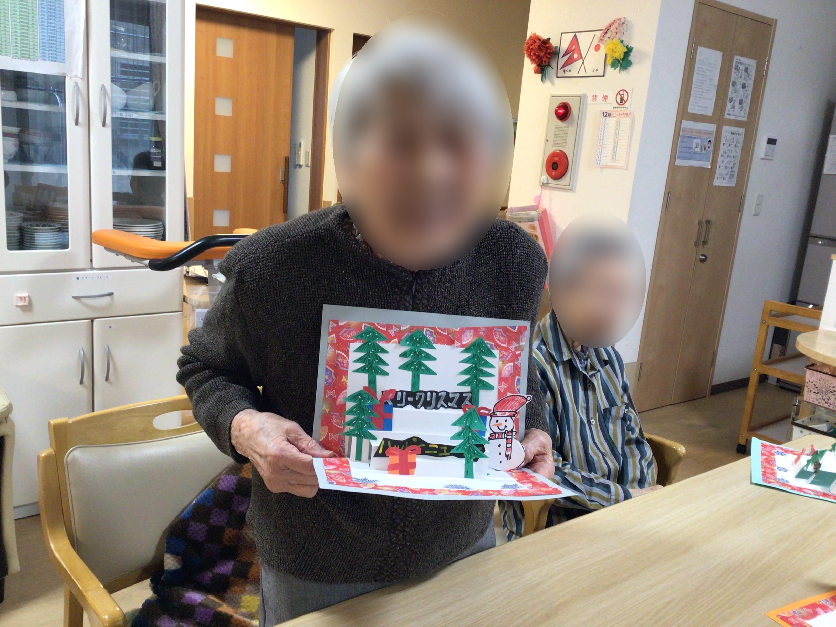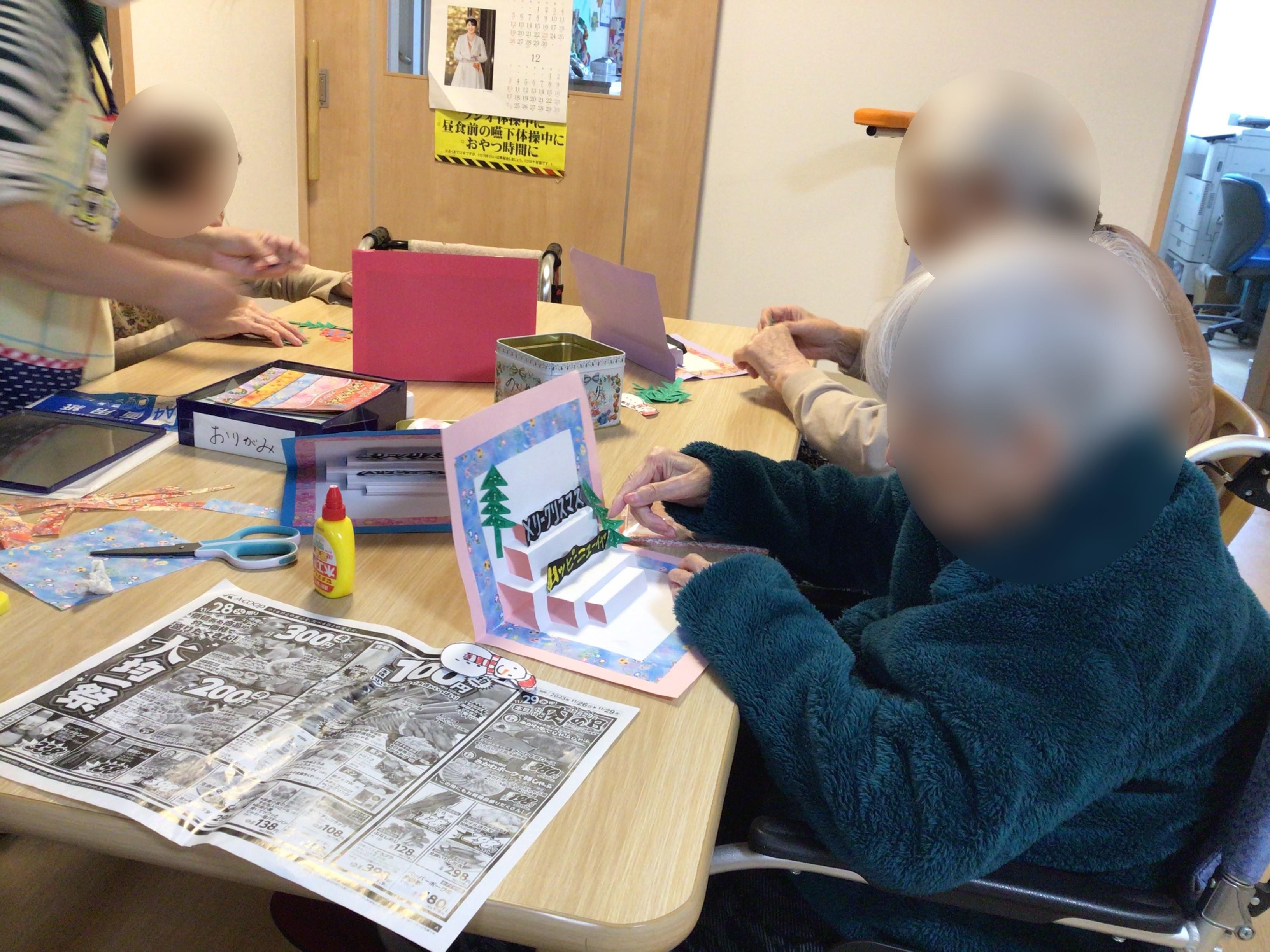 クリスマス会にご利用者様同士でクリスマスカードを交換する為に皆様作成中です