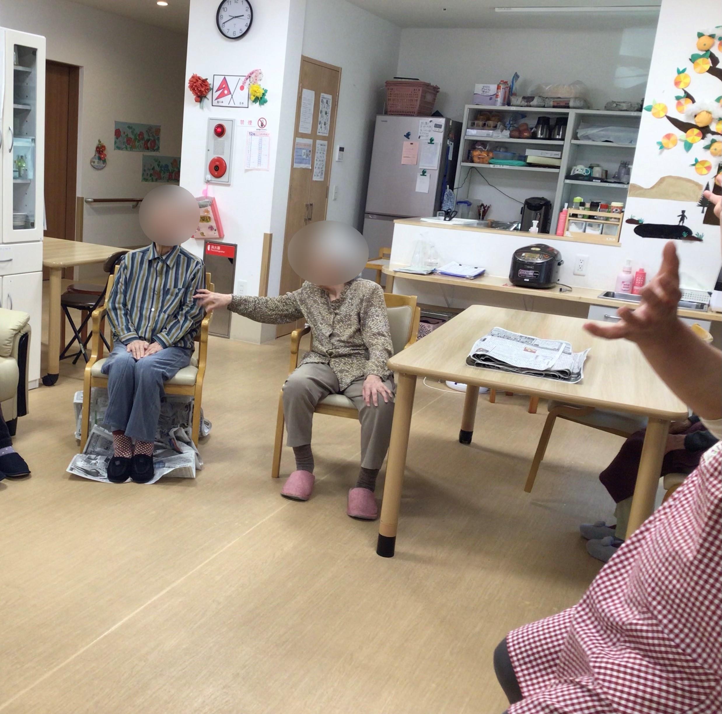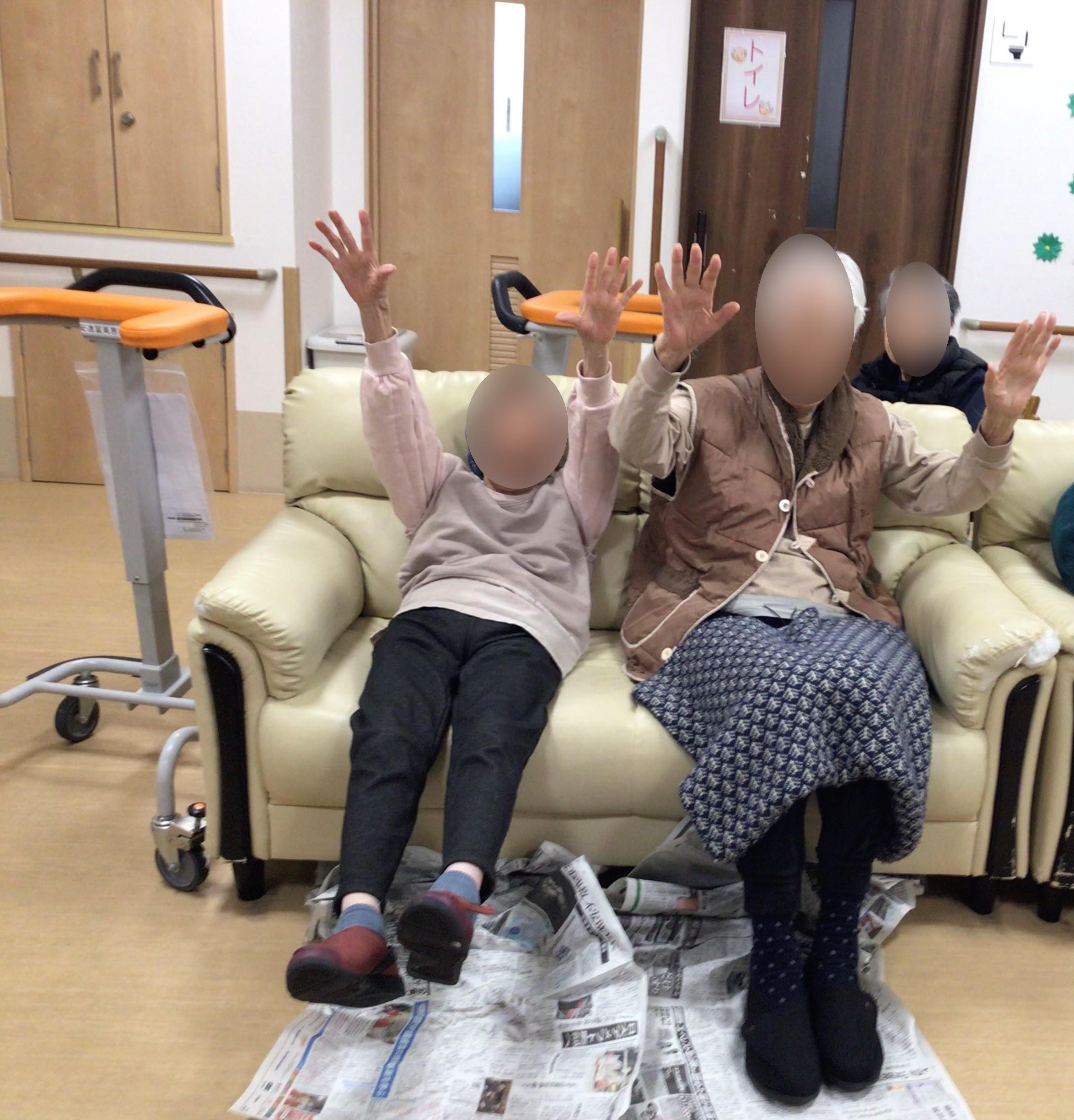室内にて運動をしながら楽しく過ごして頂けるよう新聞紙リレーを開催させて頂きましたheart04