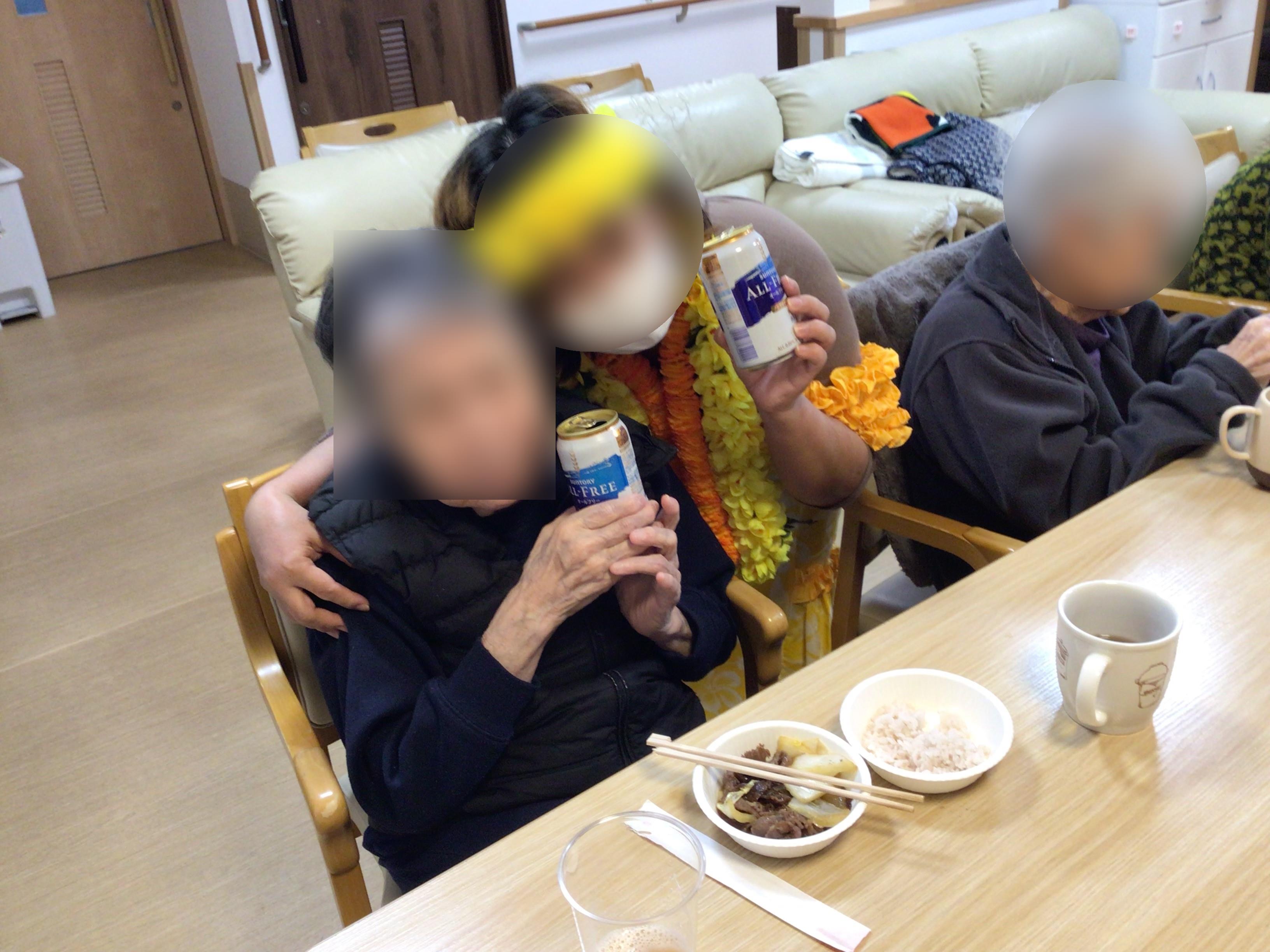 余興で、アロハダンスをご利用者様と踊ったり、