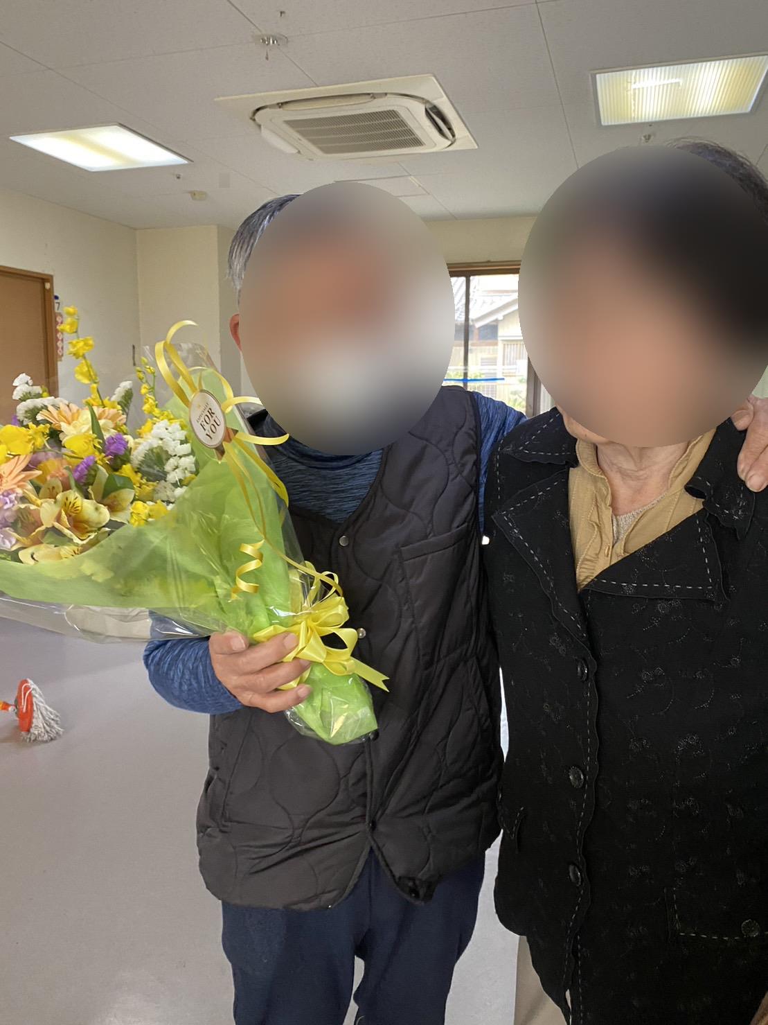 入居者様様から花束を渡して頂きました