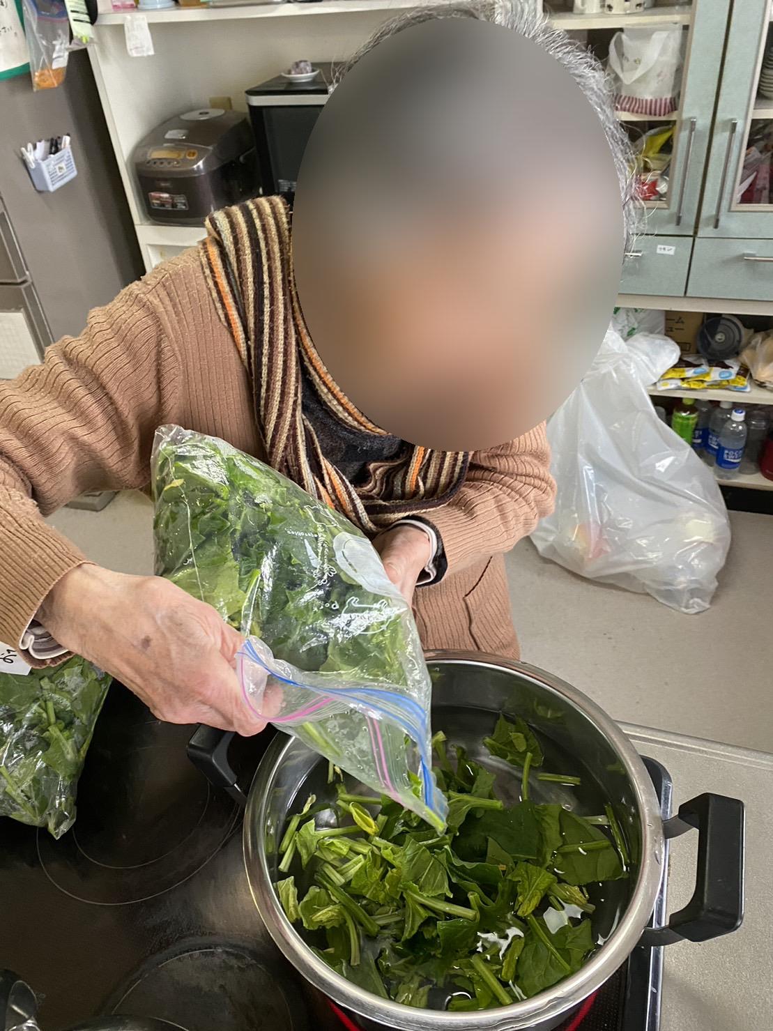 本日の夕食restaurantのお浸しのほうれん草を茹でていただきましたshine