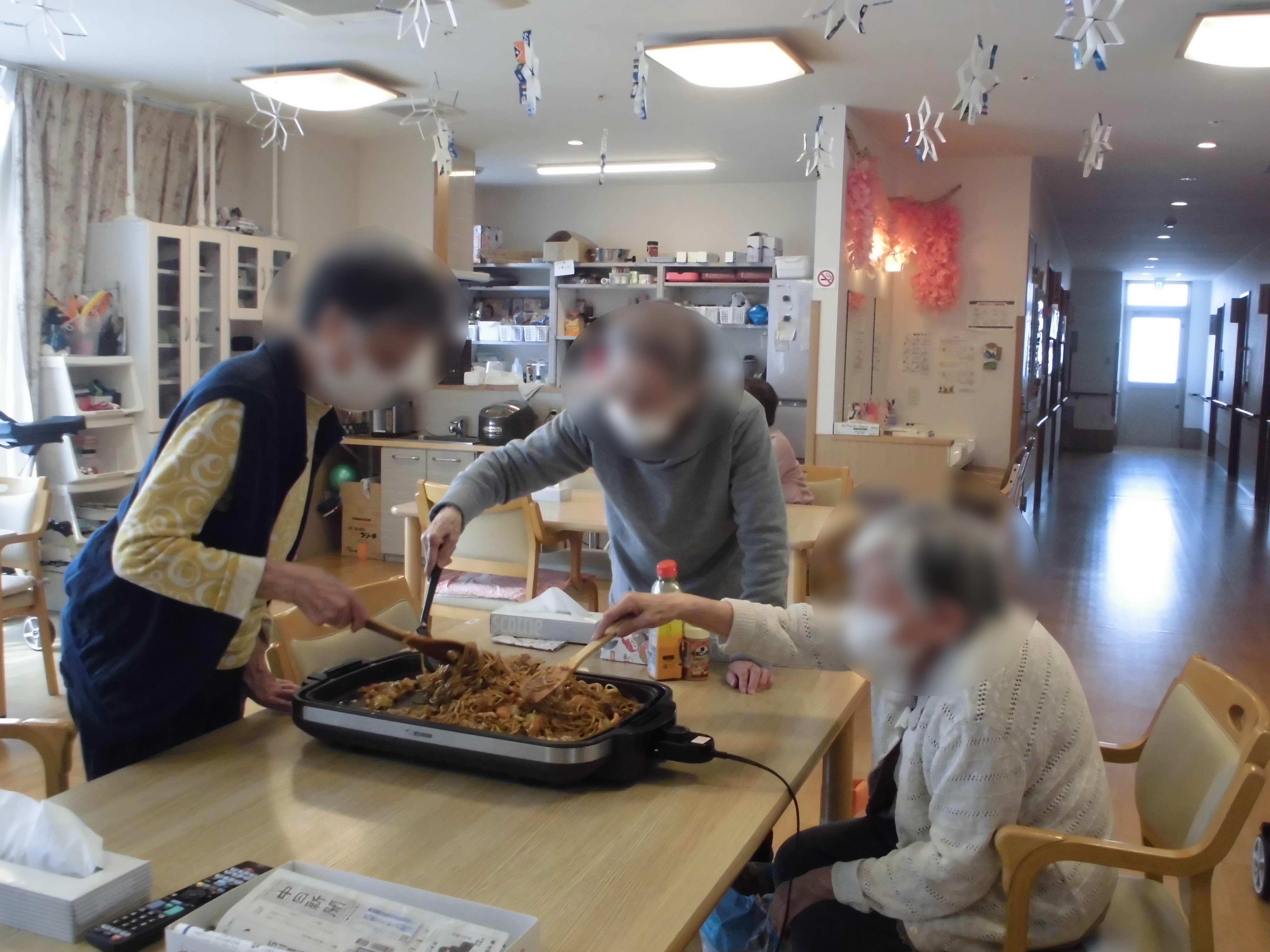 ホットプレートで焼きそばを作っていただきました