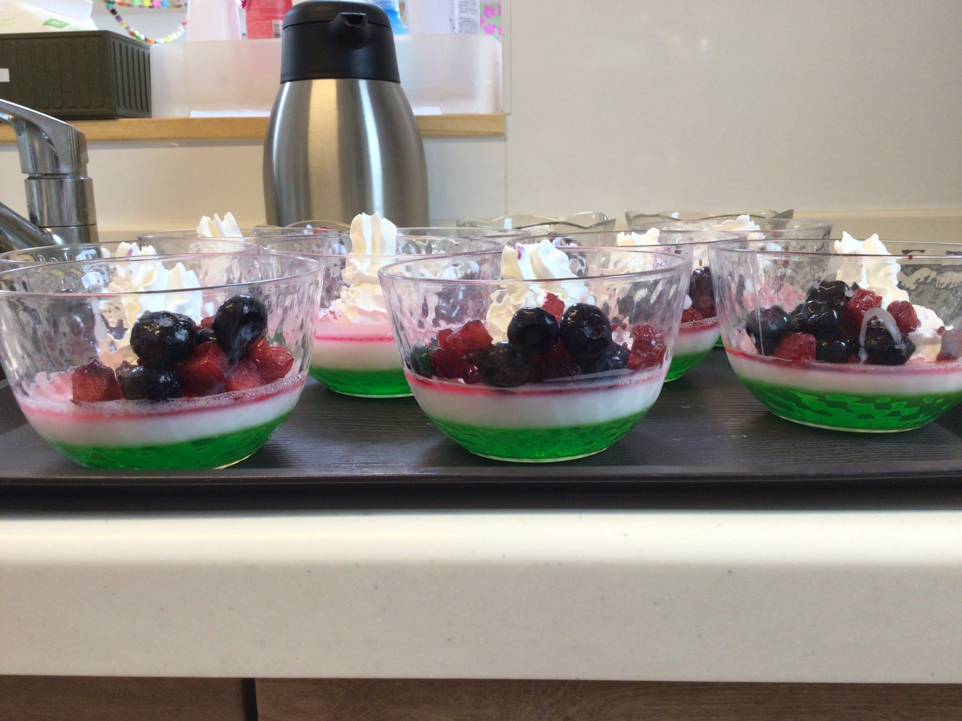 おやつには、3色ゼリーを手作りし、皆様に召し上がっていただきました