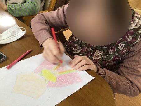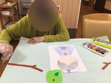 2Fフロアでは2月にひな祭りに向けてご利用者様とイラストを作成しました