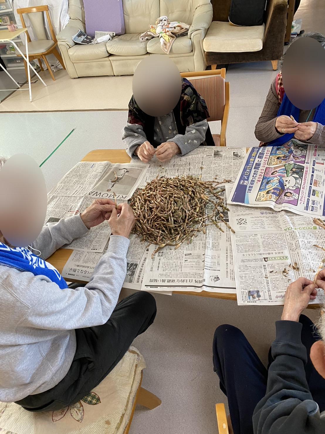自然に皆様がつくしのまわりに集まって、つくしのはかまをとってくださいました