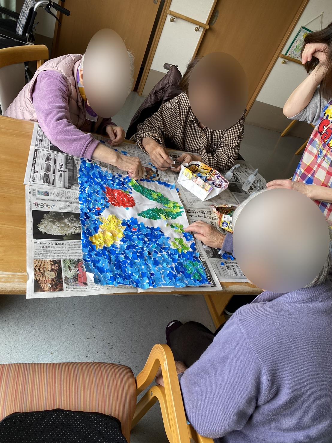 1階は季節の貼り絵を製作されていました