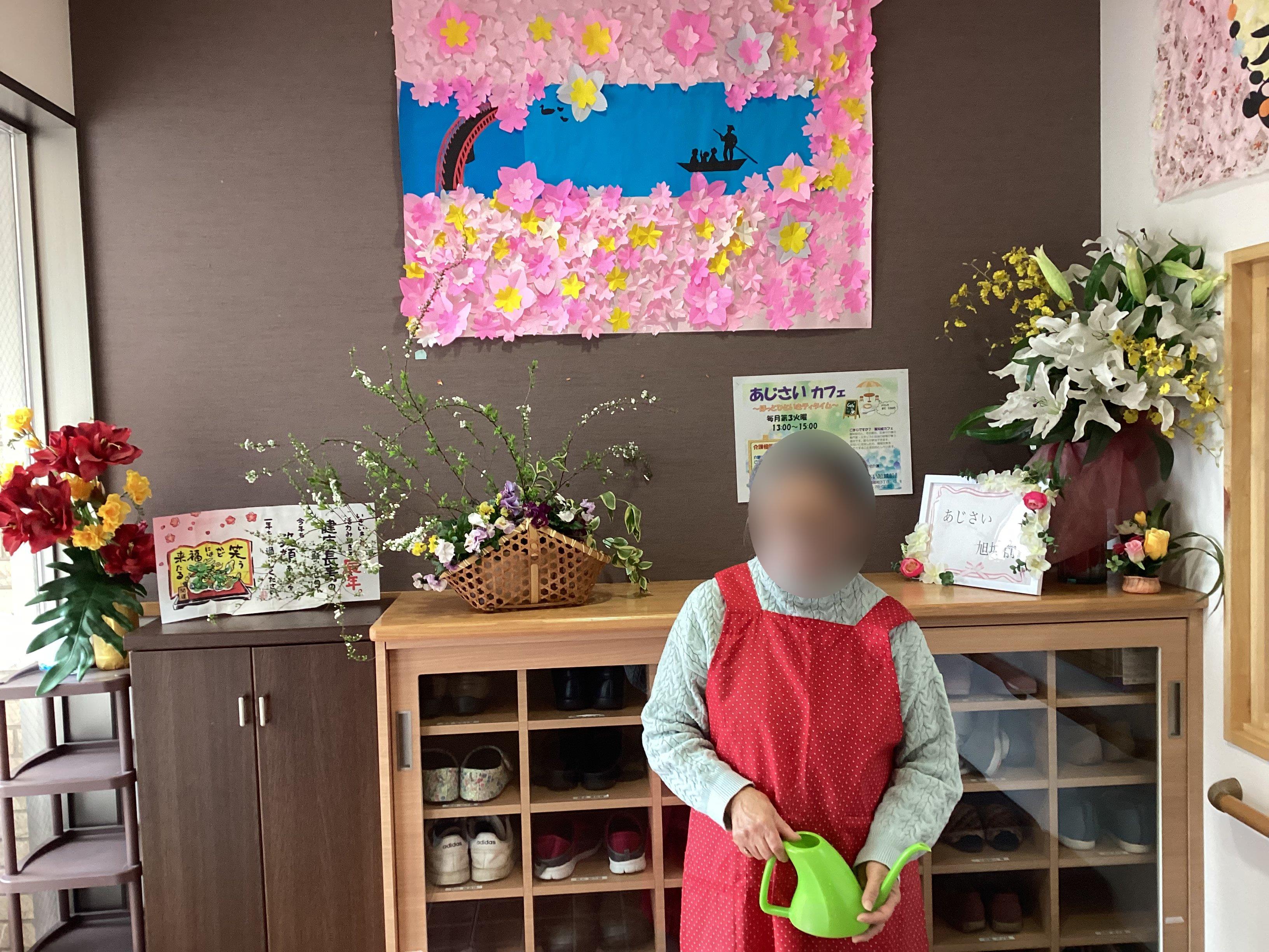 小規模のご利用者様が玄関にお花