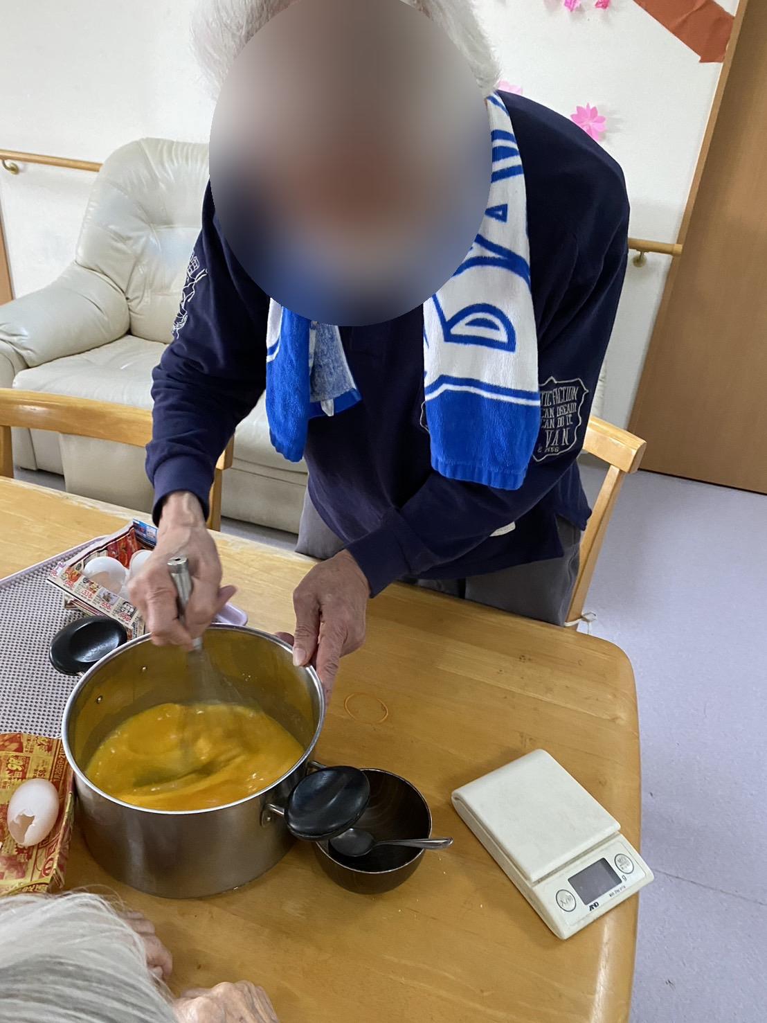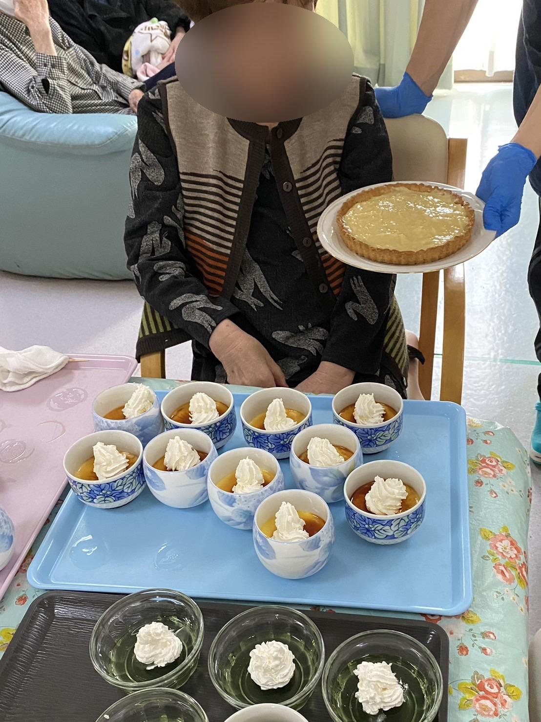 当日はプリンとカスタードタルト作りを入居者様に手伝っていただきました