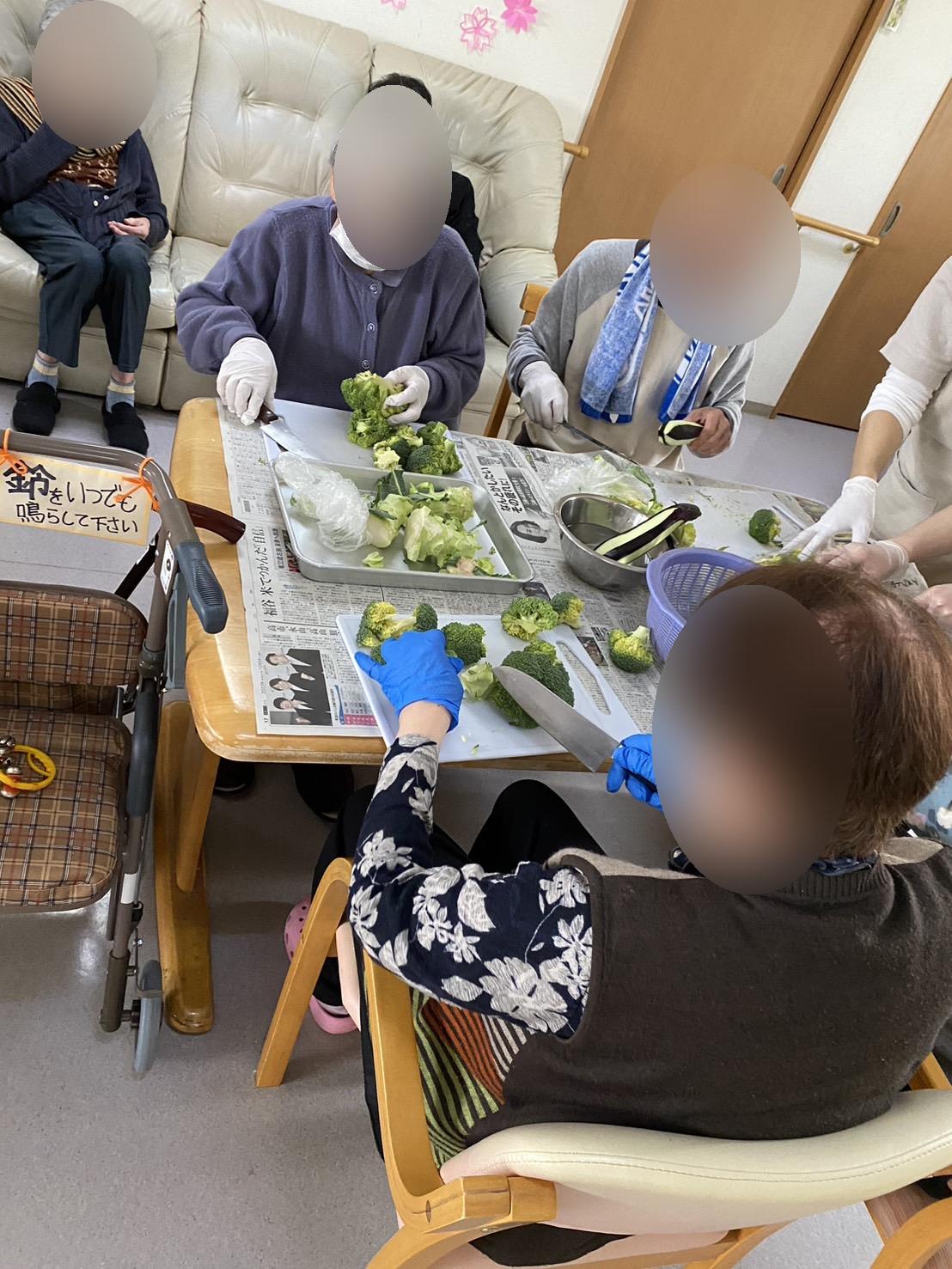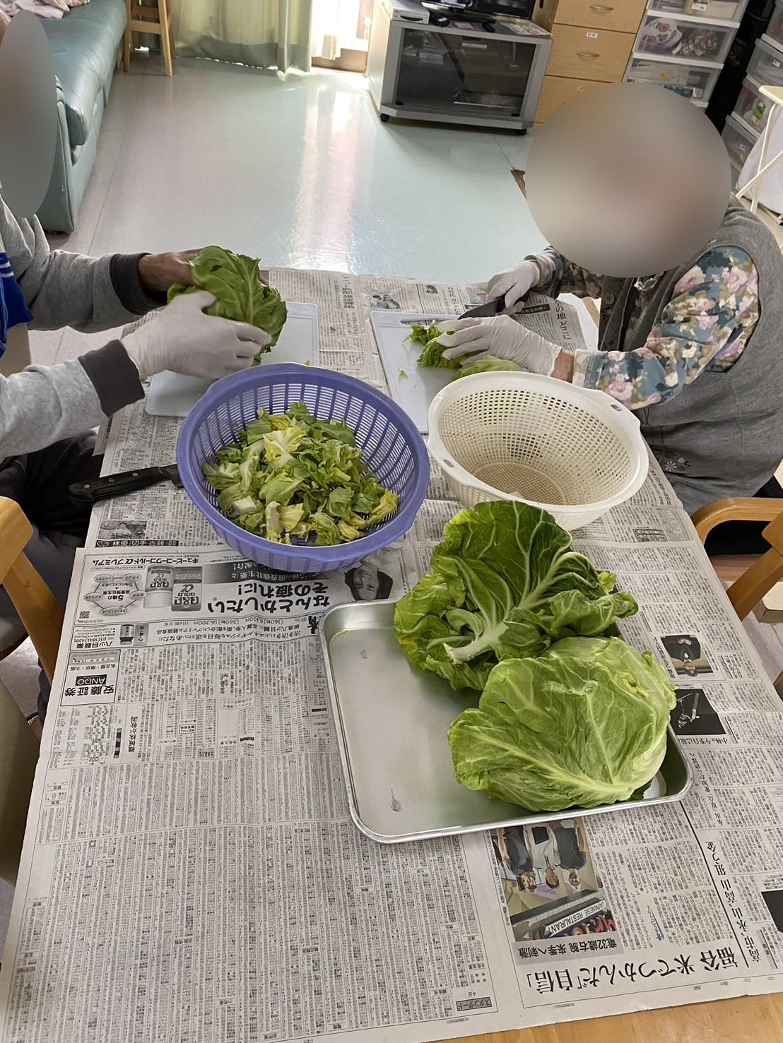 今日は野菜炒めとブロッコリーサラダとお味噌汁の具材を切っていただきました