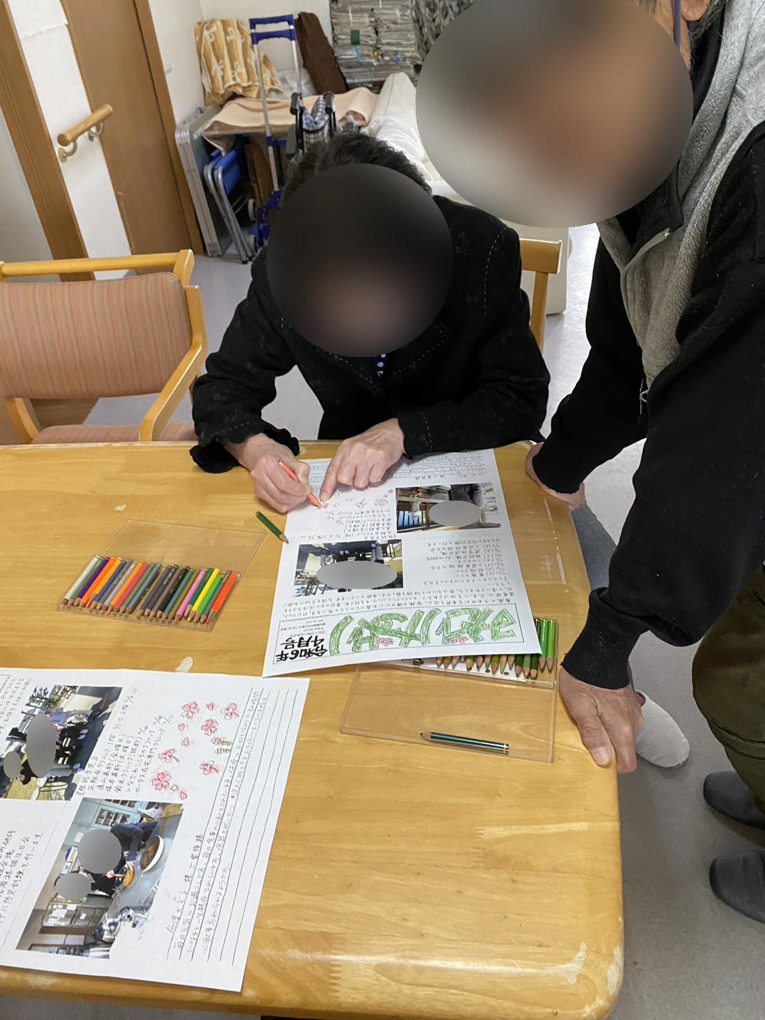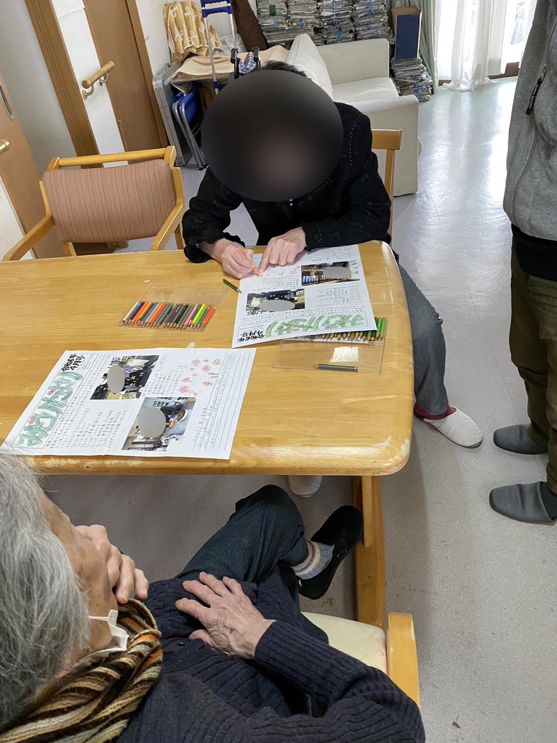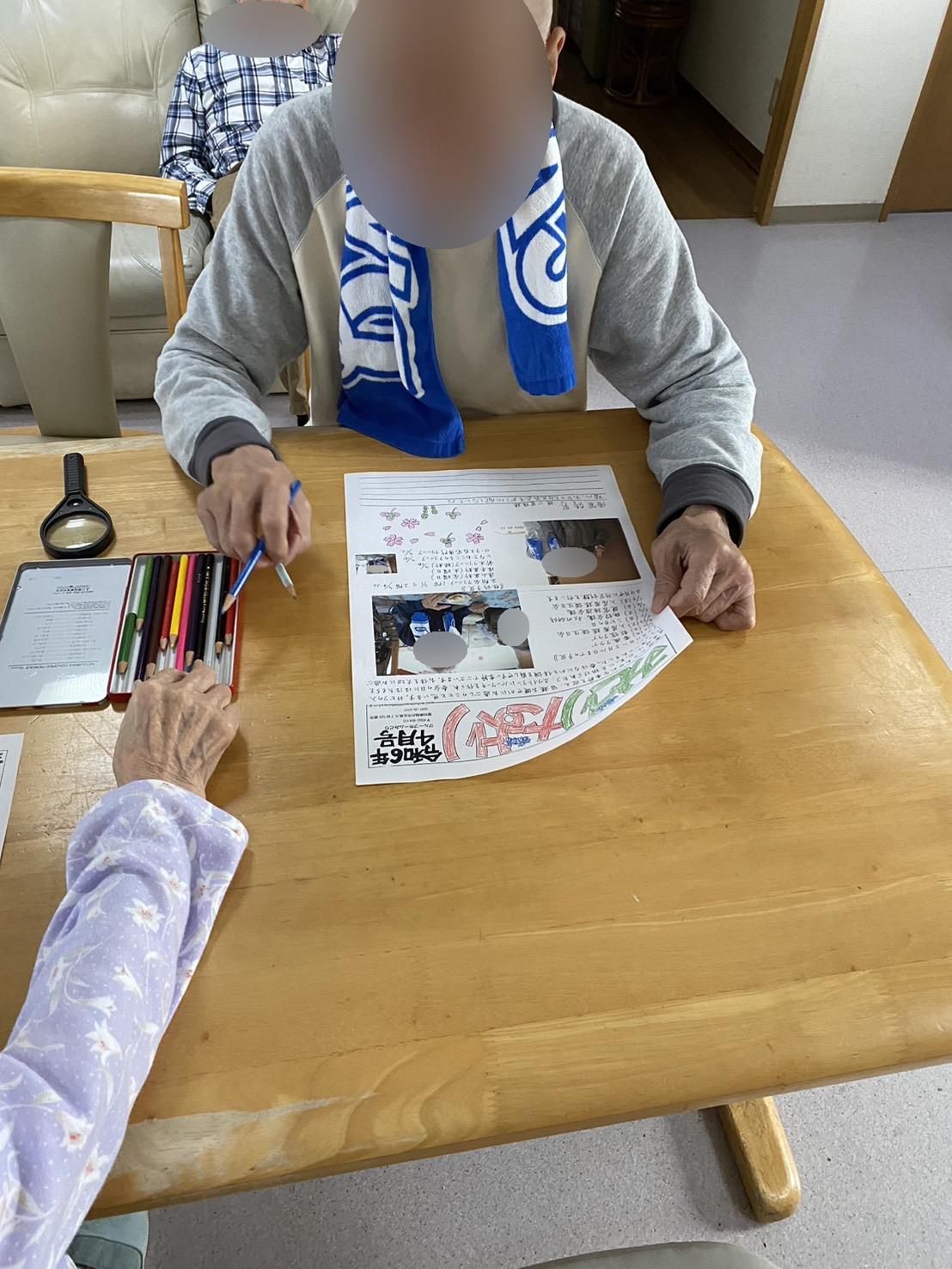 ご自分で出来る入居者様には、色塗りとお手紙を書いていただいています