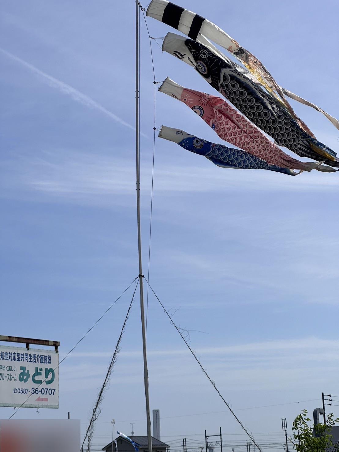 先日入居者様に直していただいた鯉のぼりを、天気の良い日