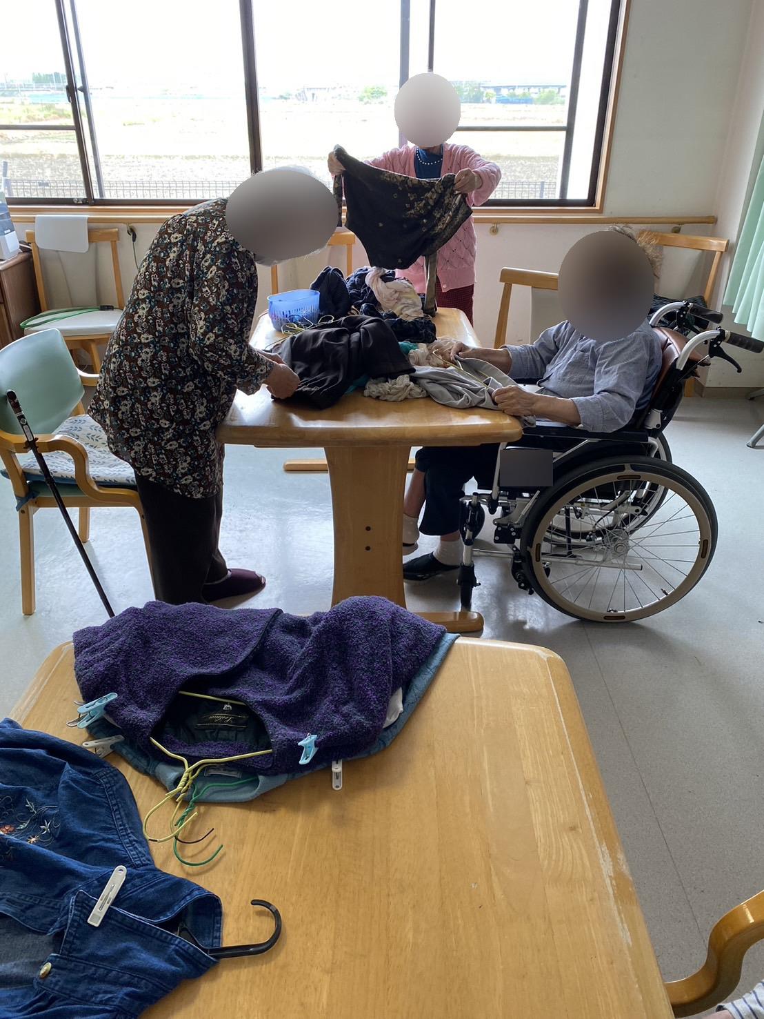 洗濯物を干してくださる方と、乾いた洗濯物を畳んでくださる方で皆様ご協力いただけました