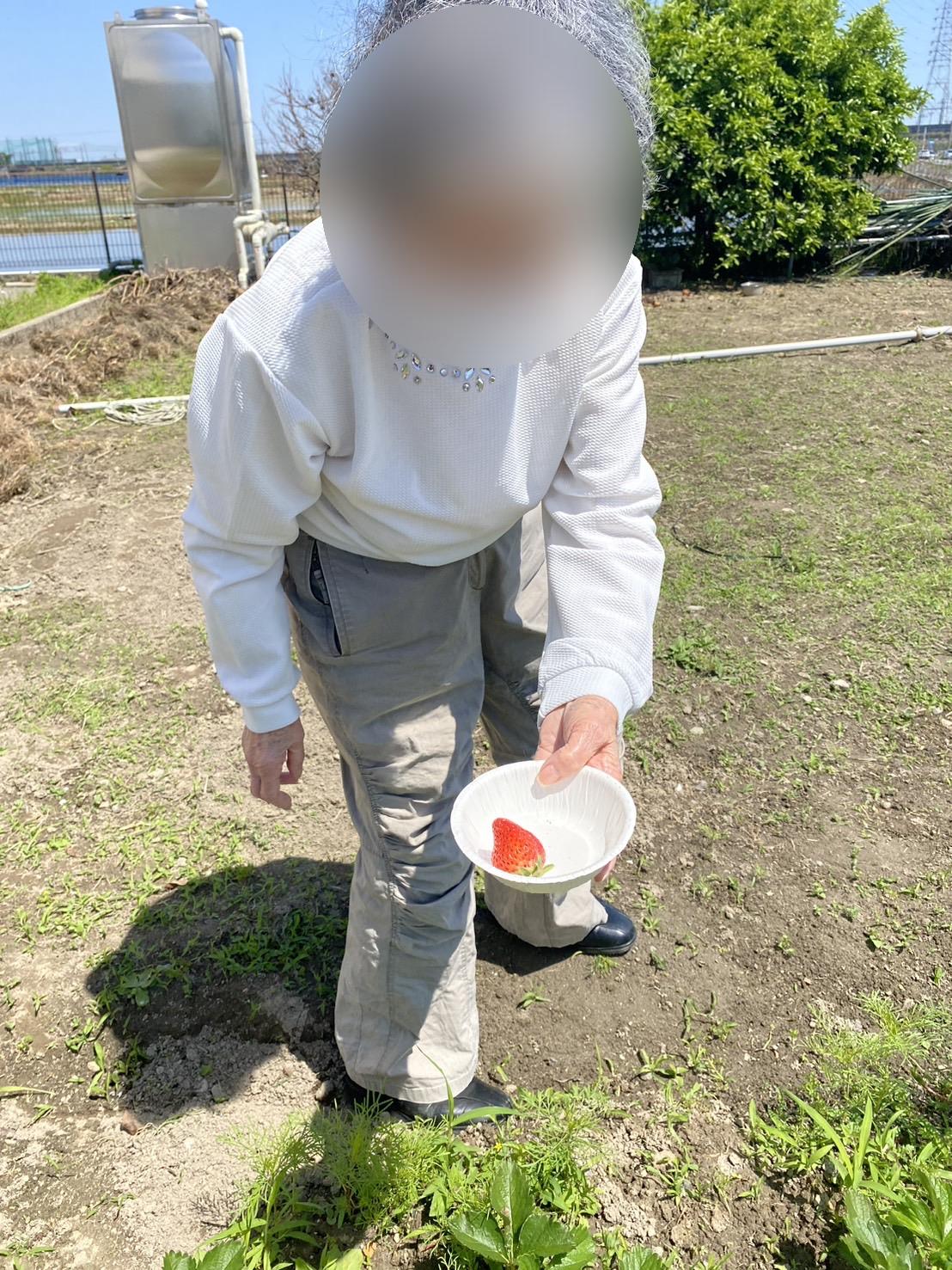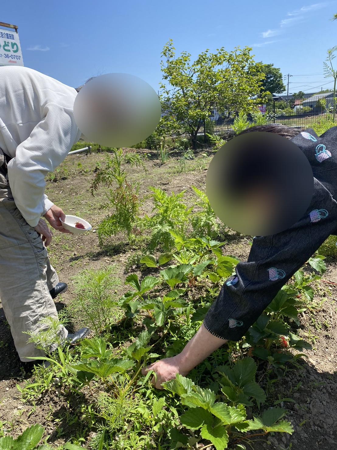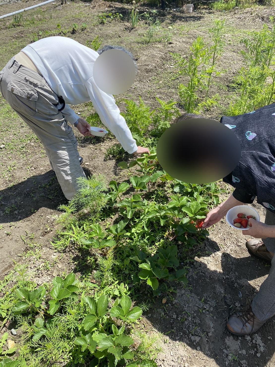 晴れた日に畑へ出ていちご狩りをしています