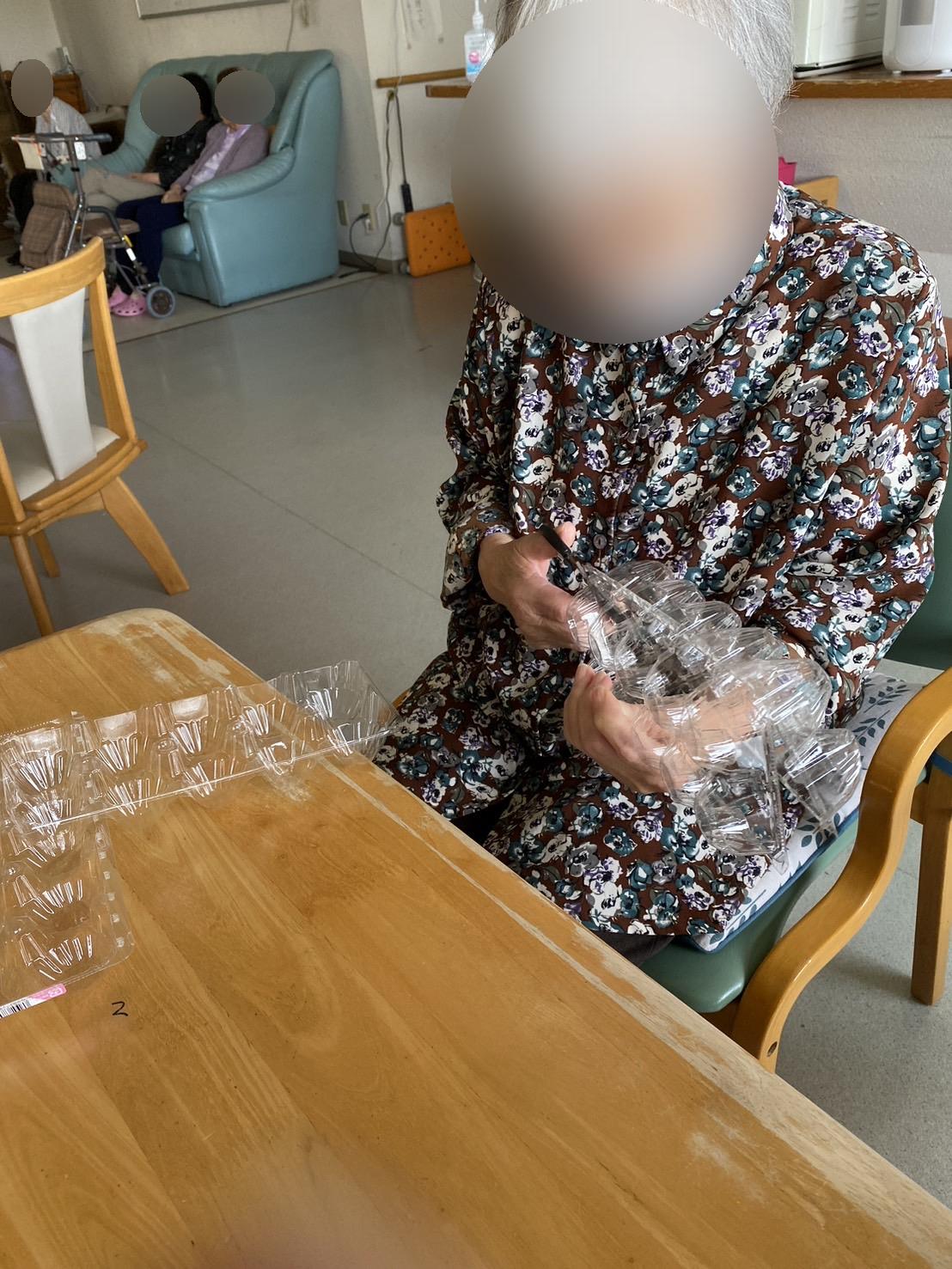 今日も卵のパックを使って、ひまわりの種を蒔いて頂きました