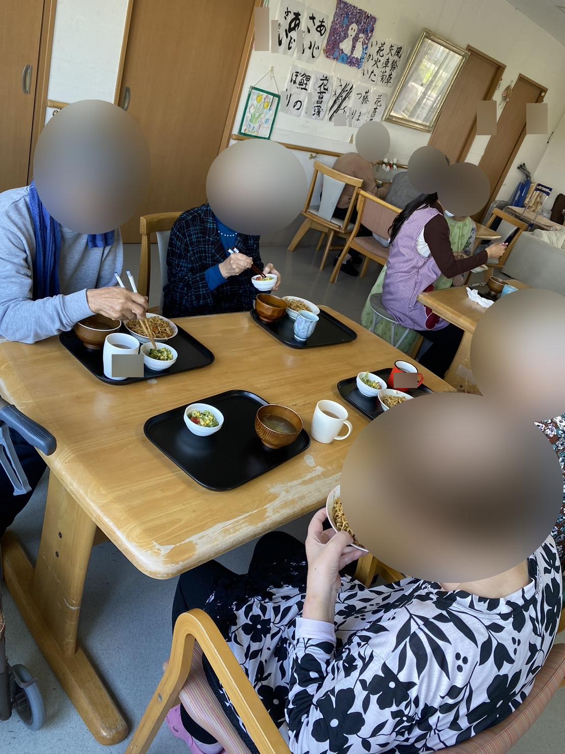 3月に入居していただいた入居者様が、初めてリビングで皆様と一緒に