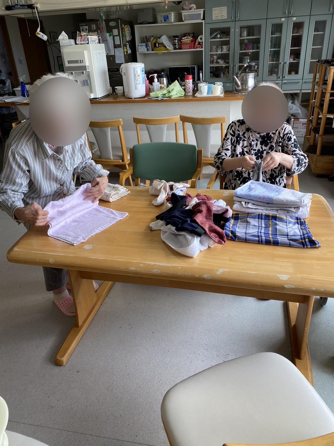 今日も入居者様が洗濯物をたたむのを手伝ってくださっていました