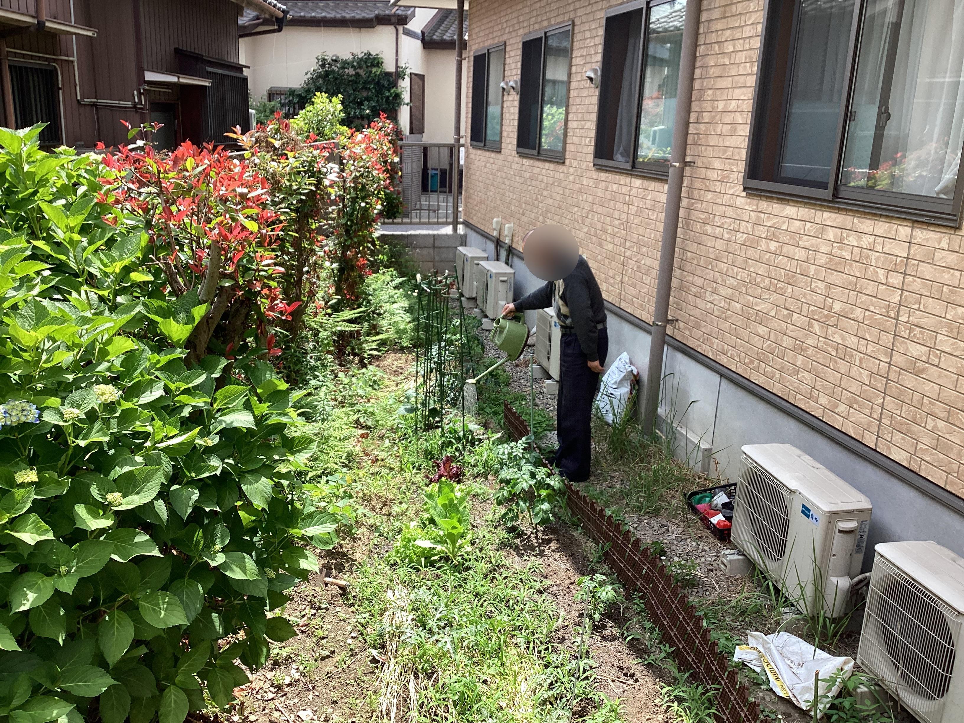 庭の畑のみずやりをご利用者様に行なっていただきました