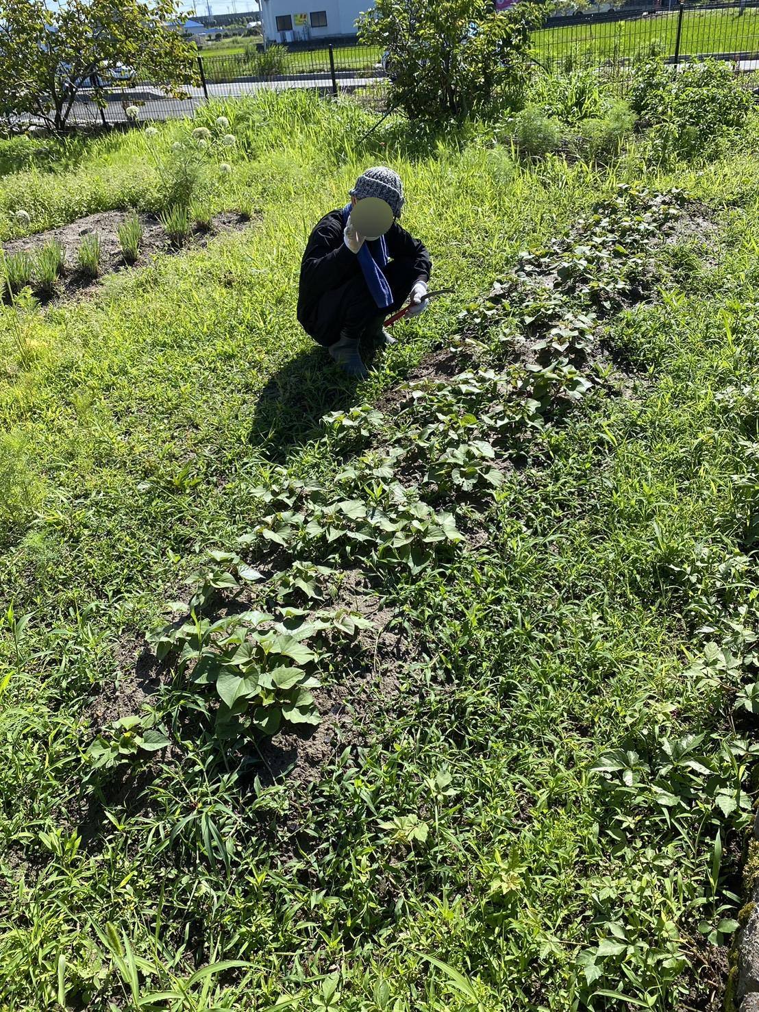 、今日は朝食後から畑の草取りを、入居者様がしてくださっていました