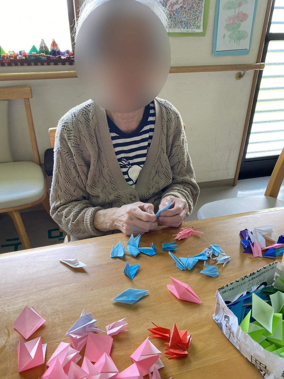 折り紙を折る事が趣味の入居者様が今日も折り鶴を作られていました