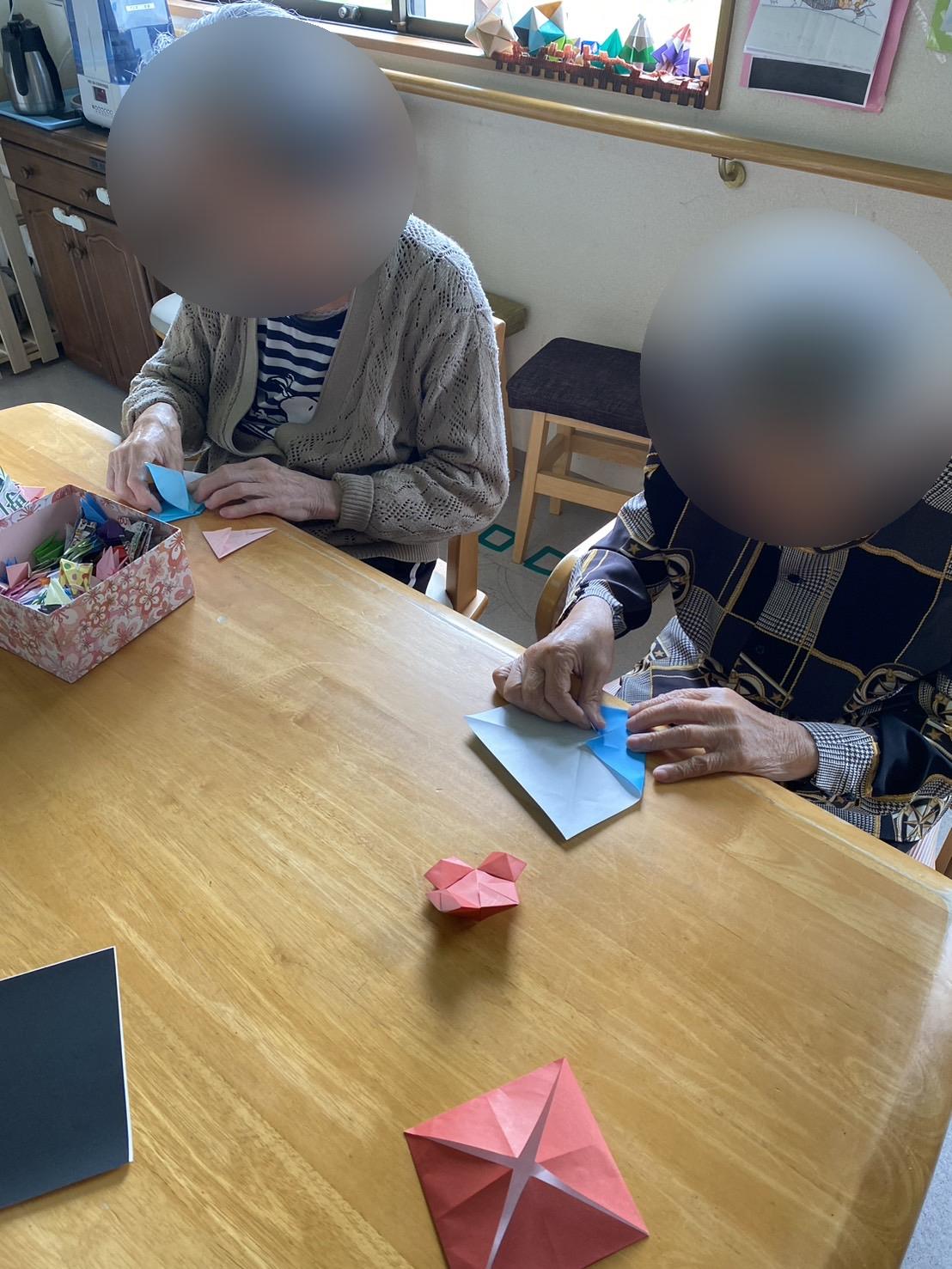 今日は折り紙で折り鶴を折ってくださる入居者様と一緒に、折り紙を折って過ごされました