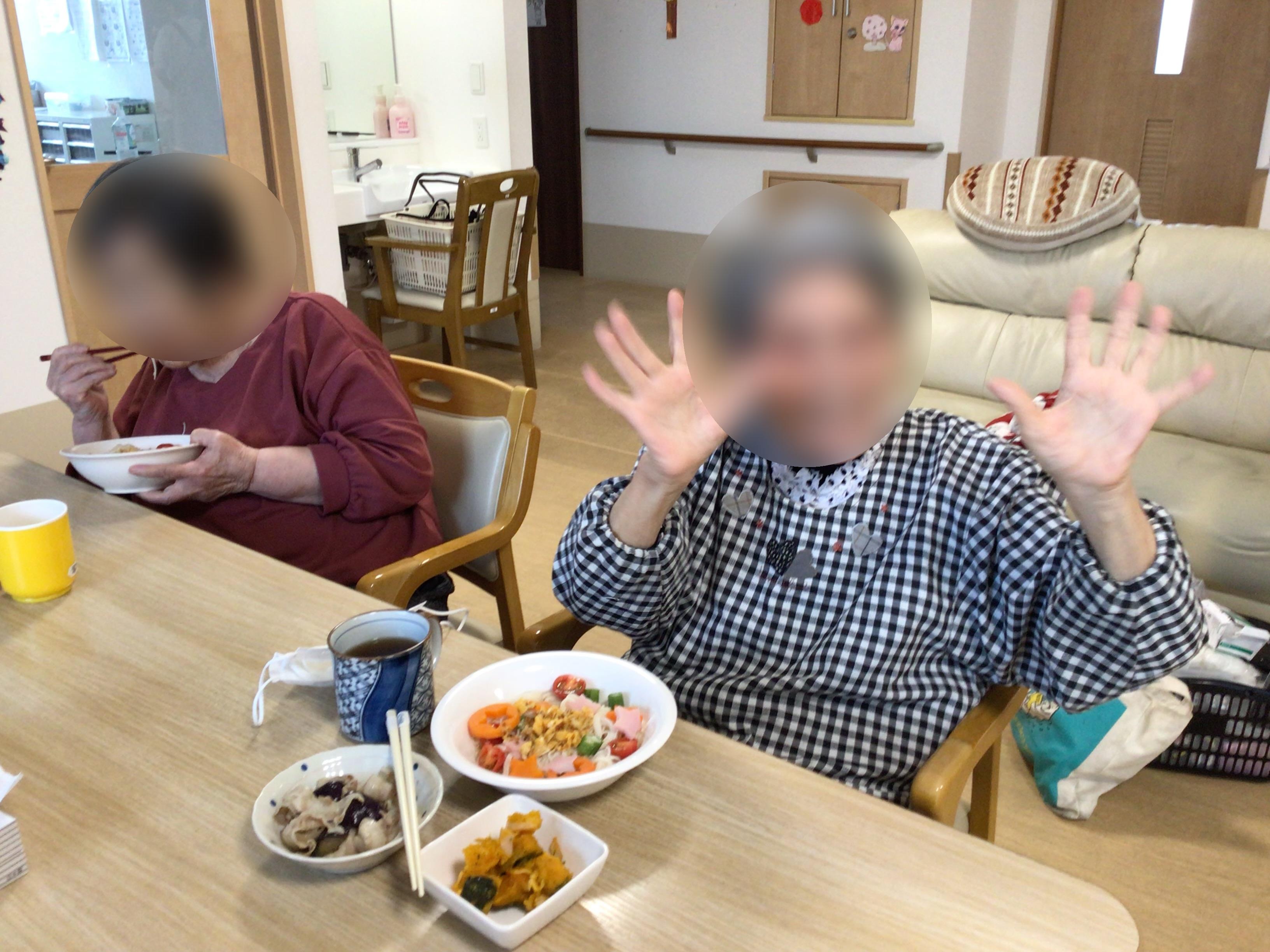 笹の葉にご利用者様方のお願い事や手作りの七夕飾りが