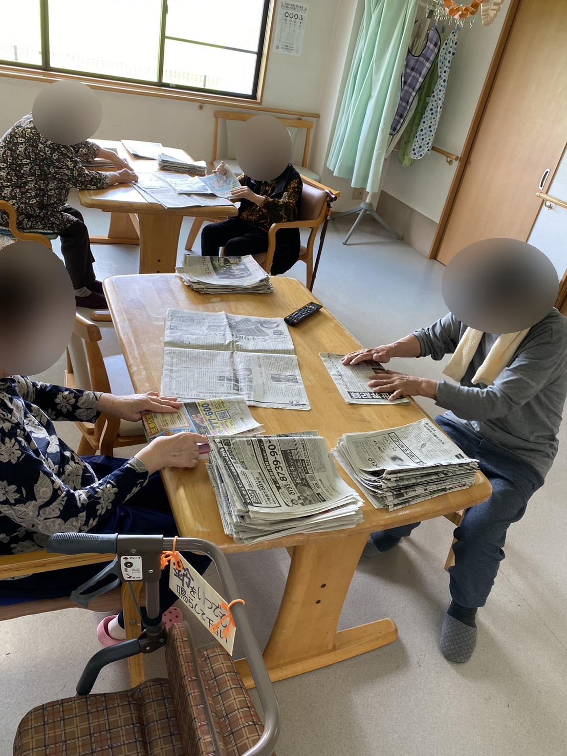 今日はゴミを捨てる時に使う新聞紙を、入居者様が用意してくださっていました