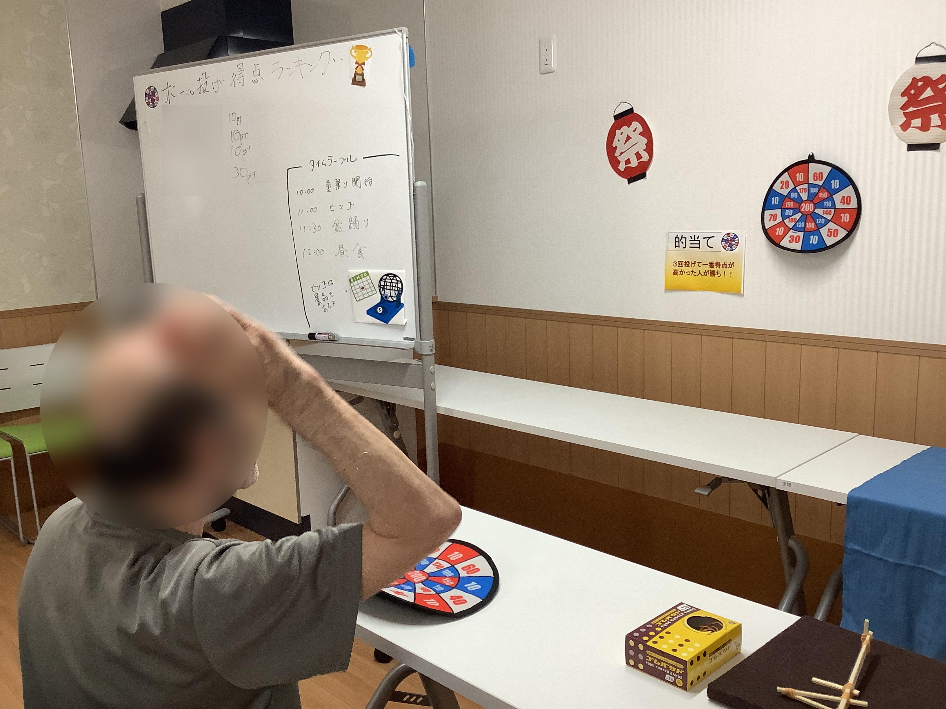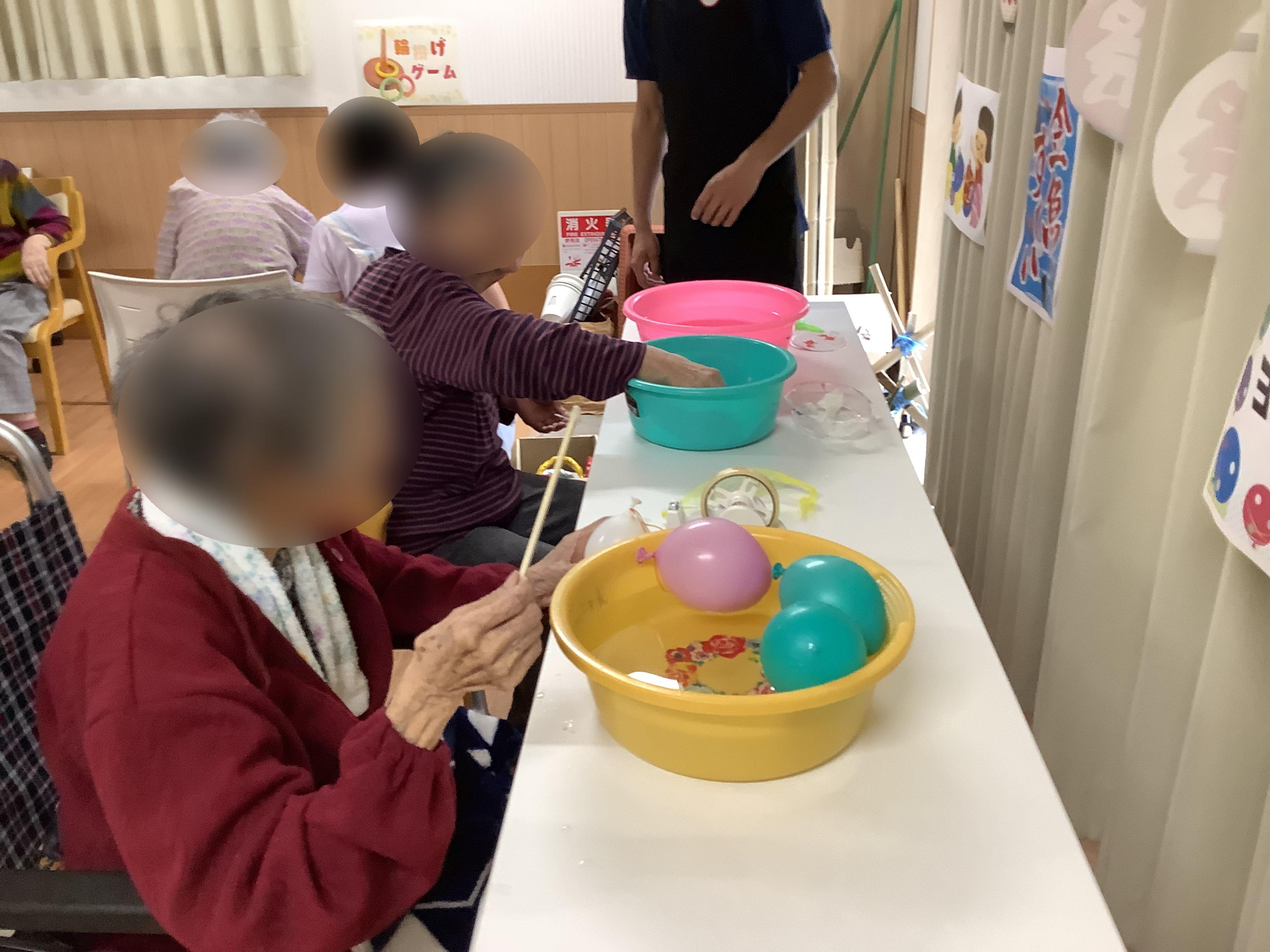 出し物は「的当て」「射的」「輪投げ」「風船釣り」「金魚すくい」「ビンゴ大会」です