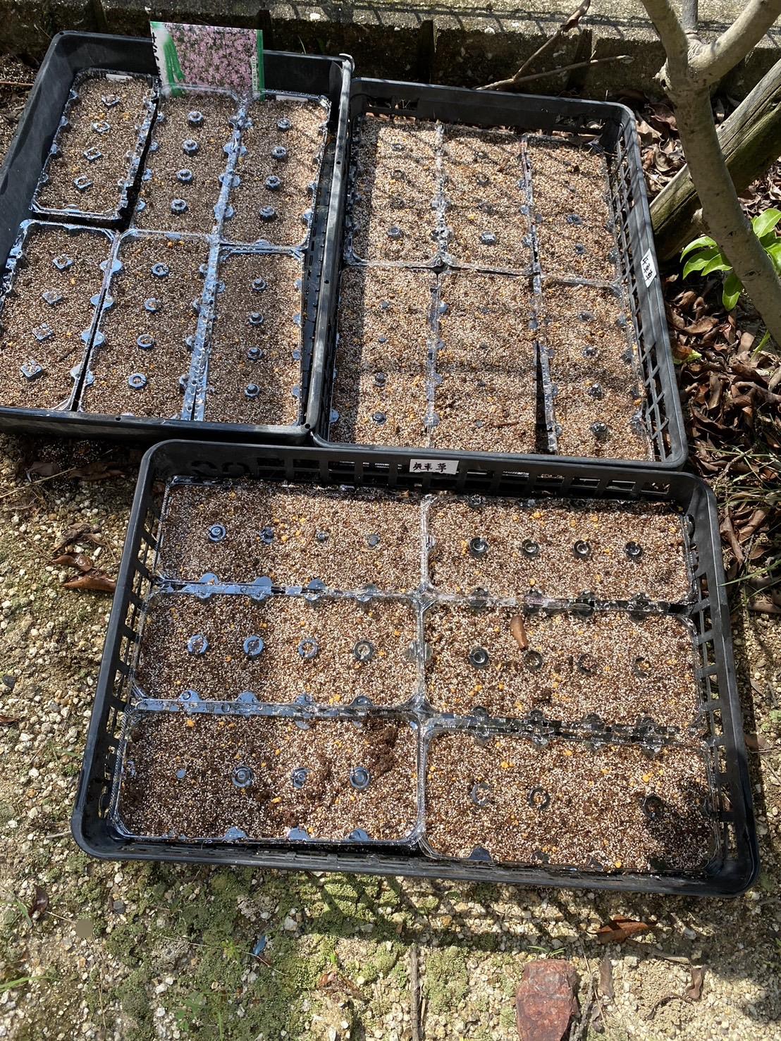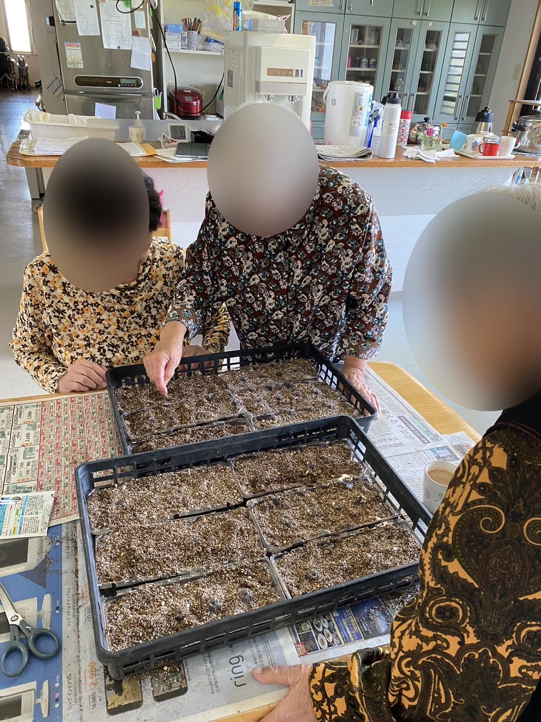 今日は春の花の種を入居者様と一緒に蒔きました