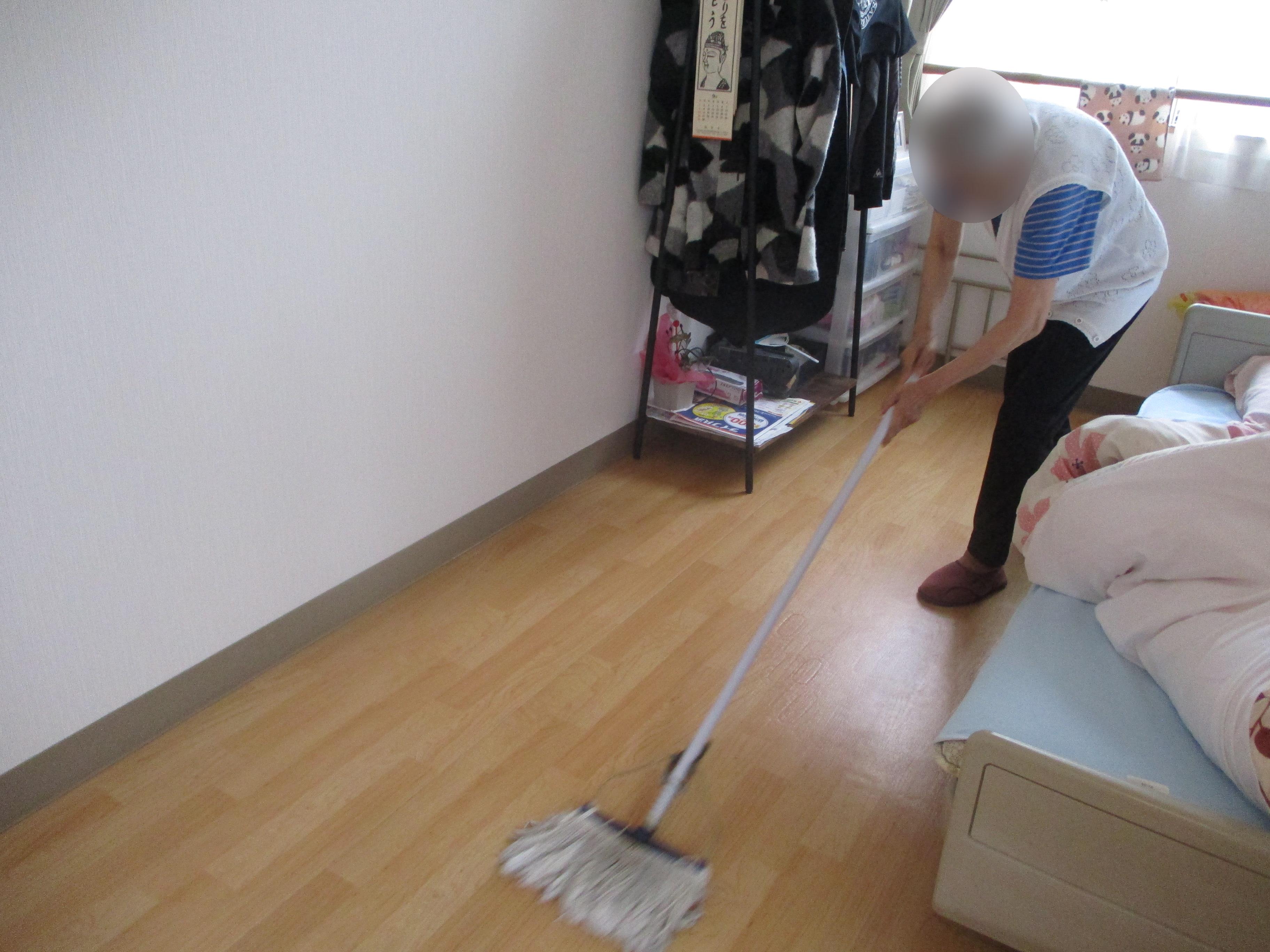 早番の職員がモップを掛けていると、