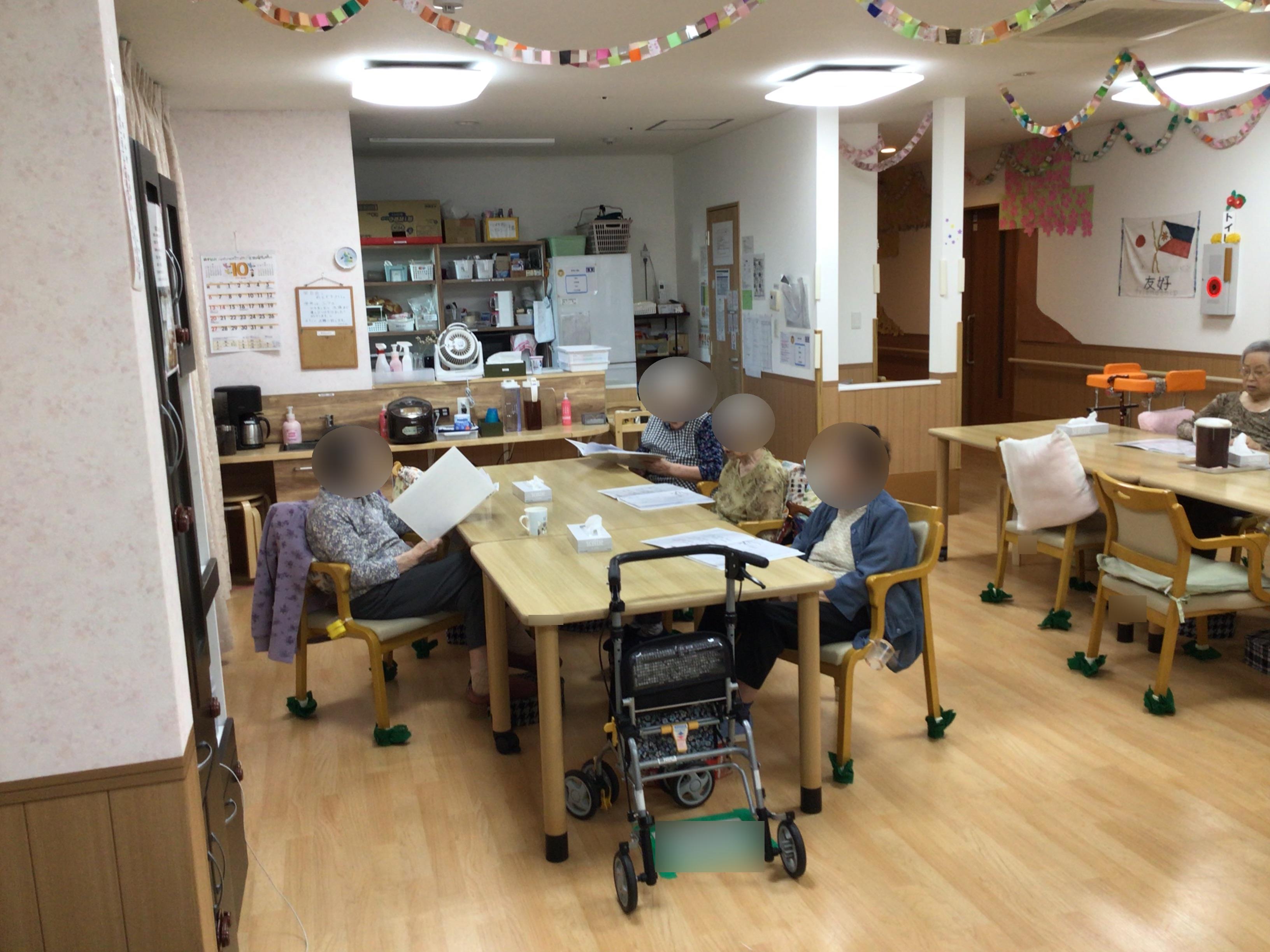 グループホームでは、音楽を流してフロア全体で合唱を行いました