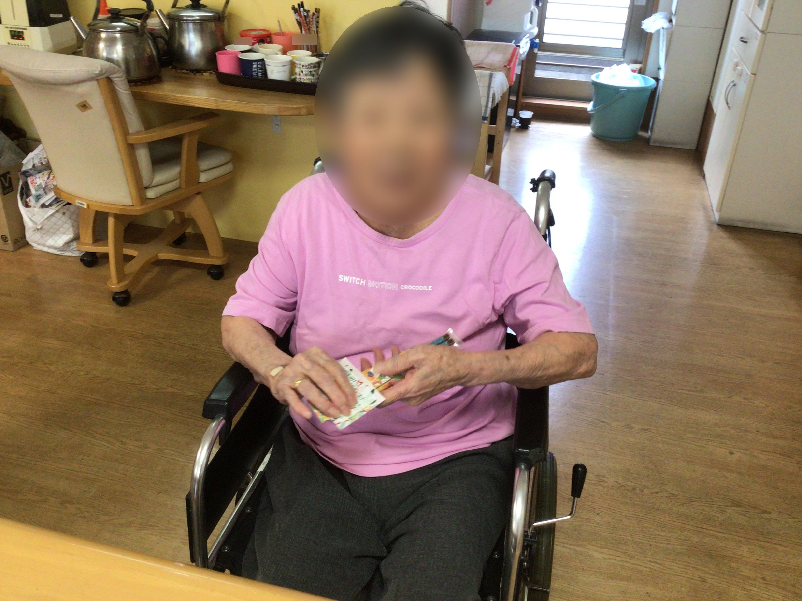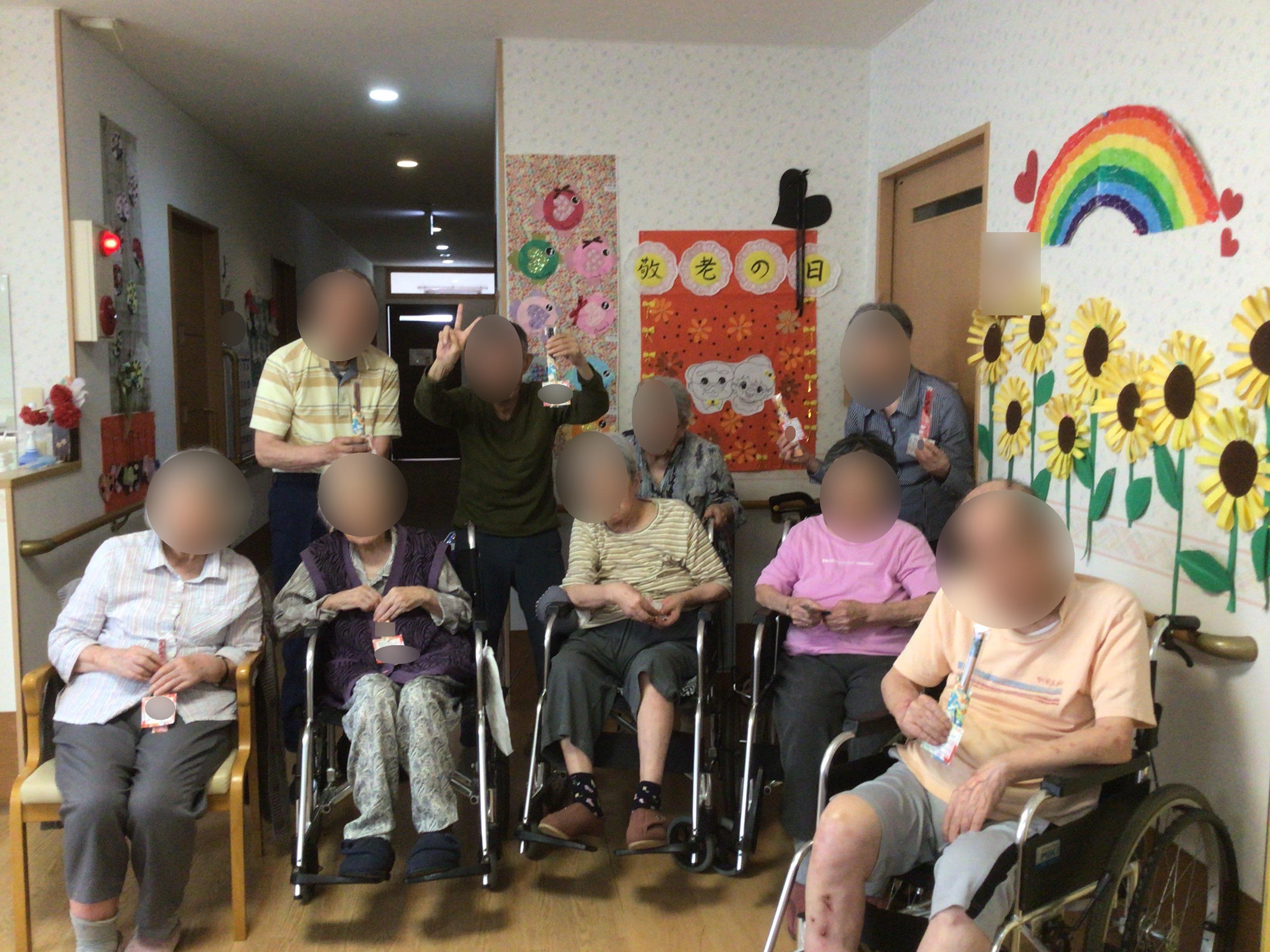 皆様、職員からのプレゼントを嬉しそうにして
