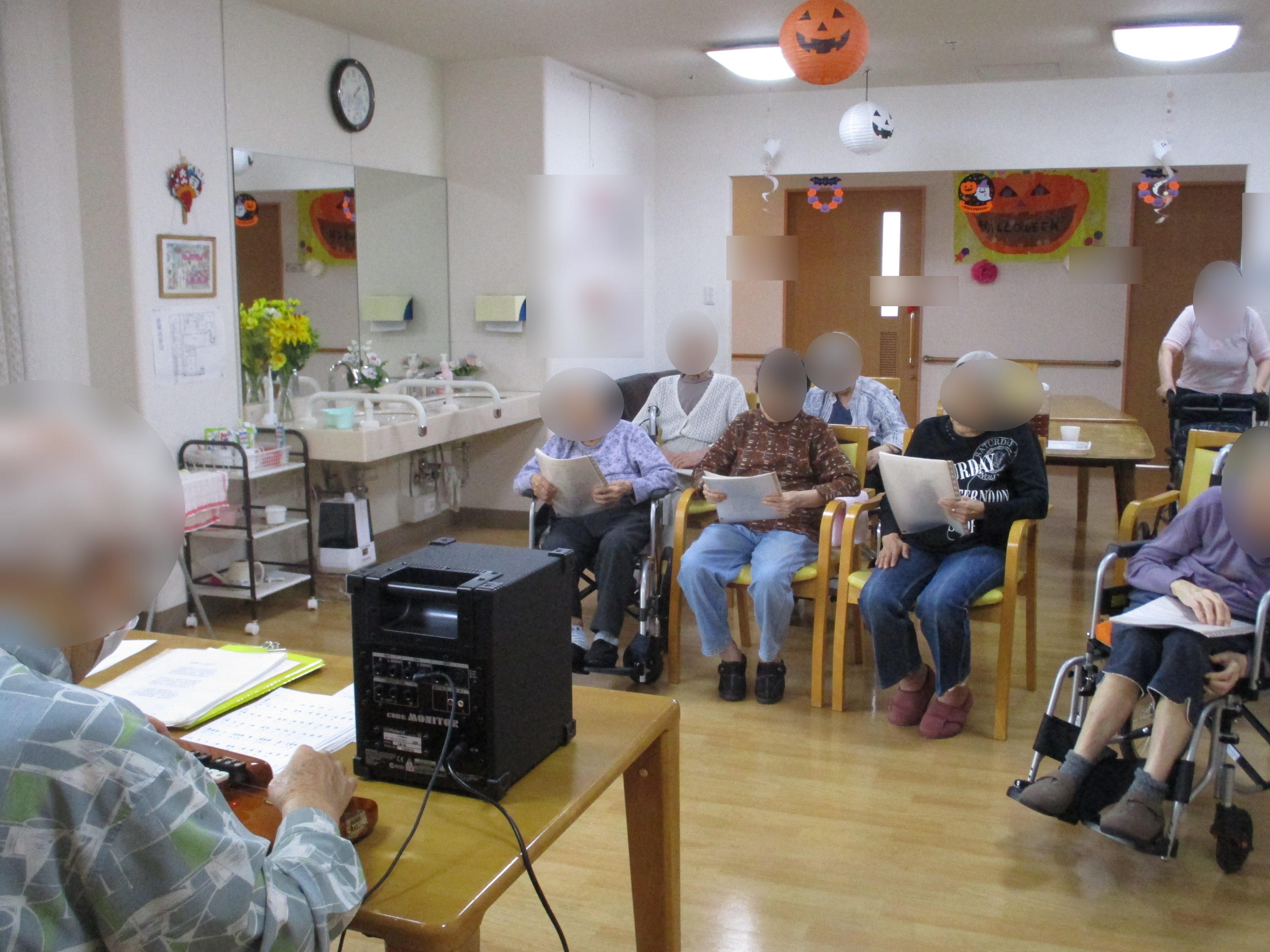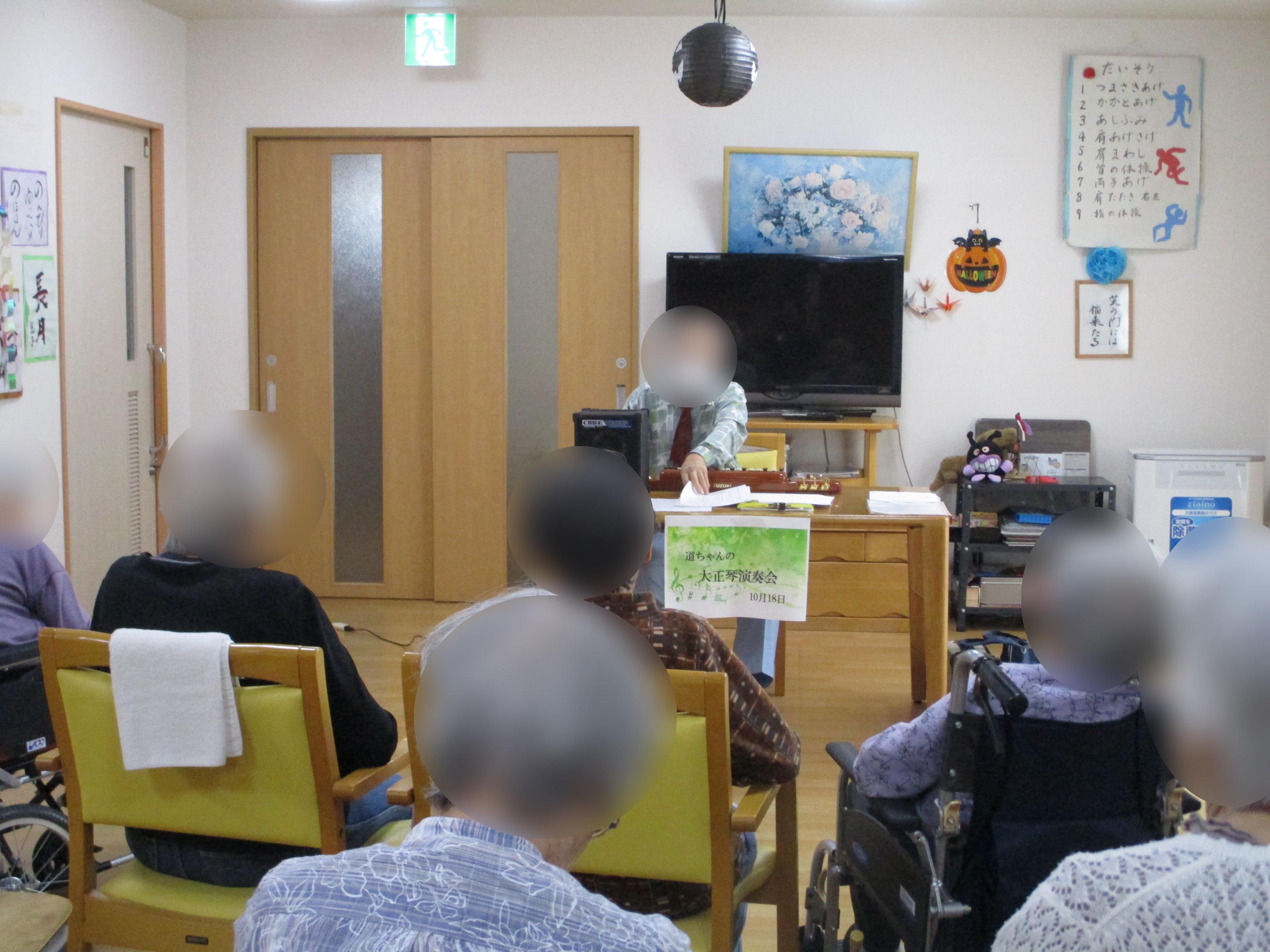 10月の大正琴ボランティア、今月は二階です