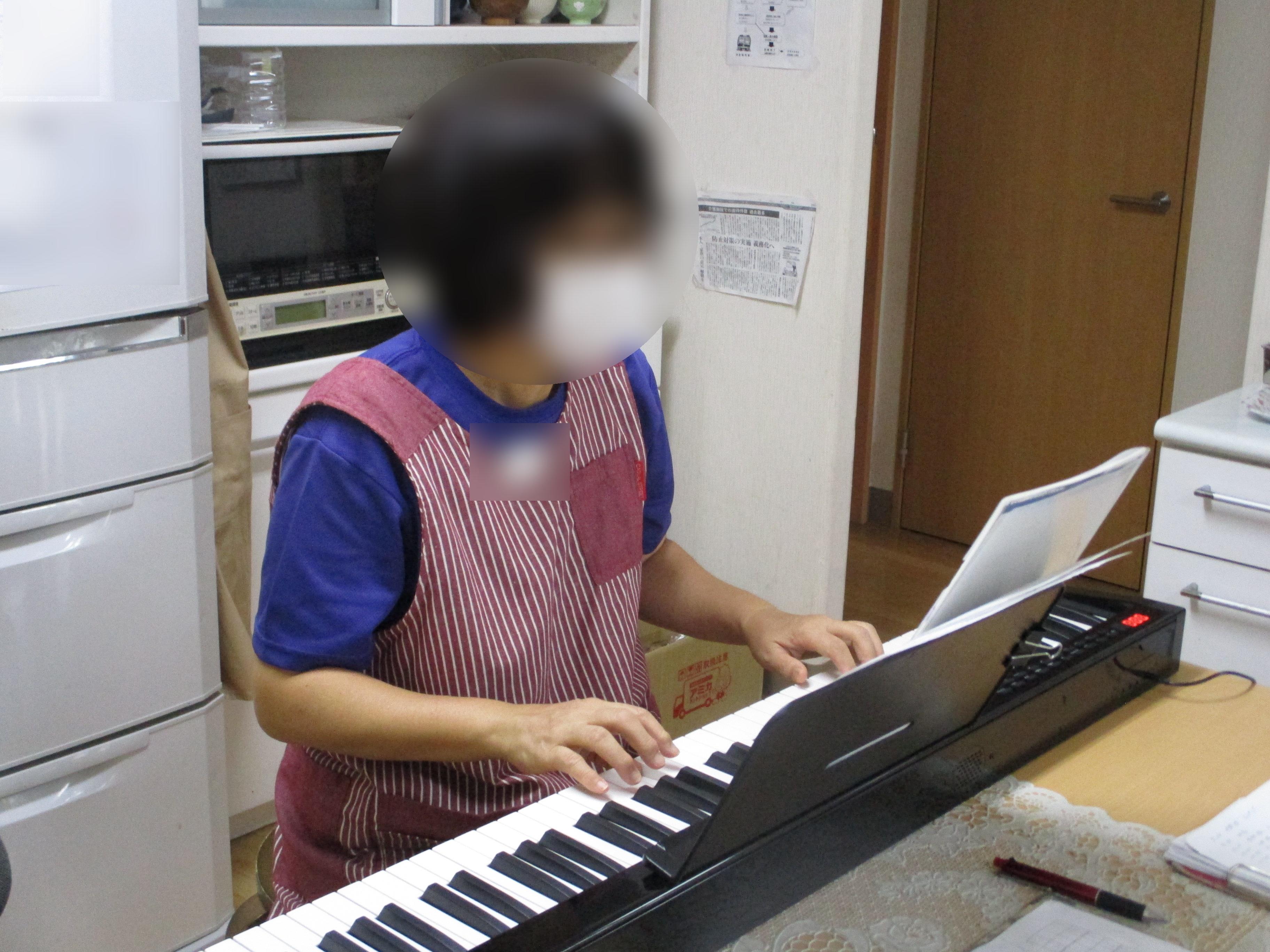 秋の曲を職員のキーボードとコラボ演奏でとなり、