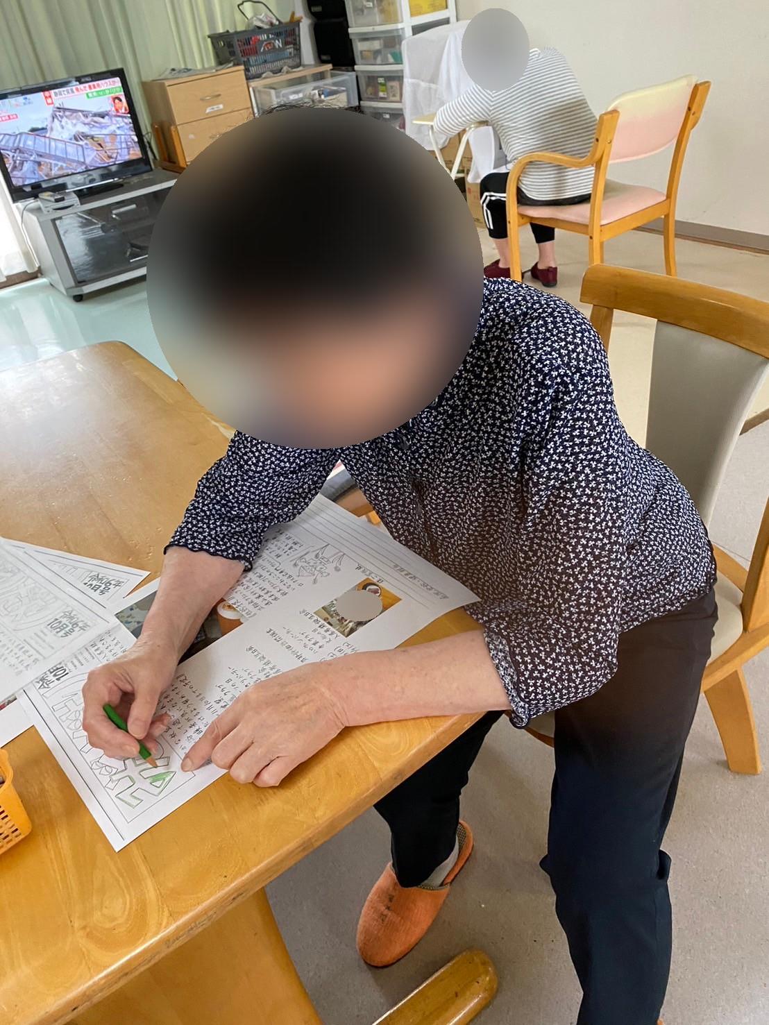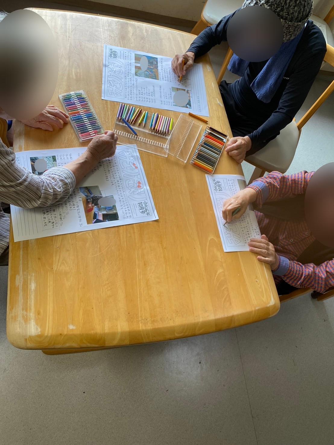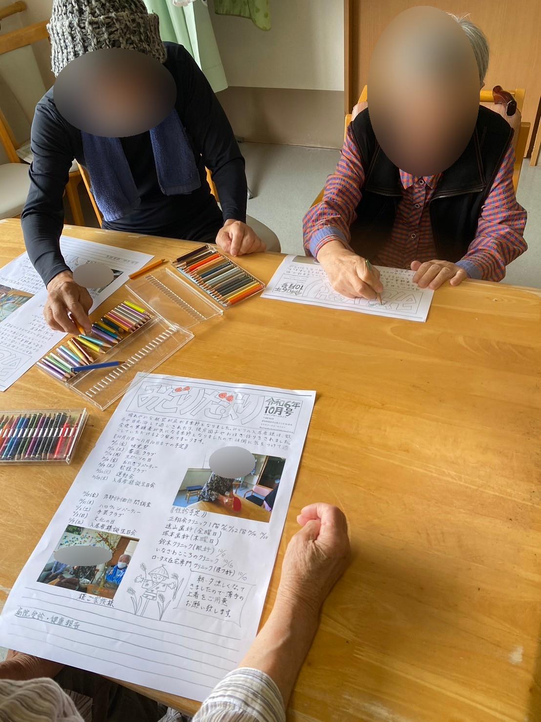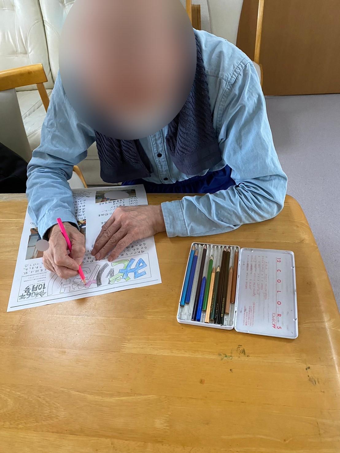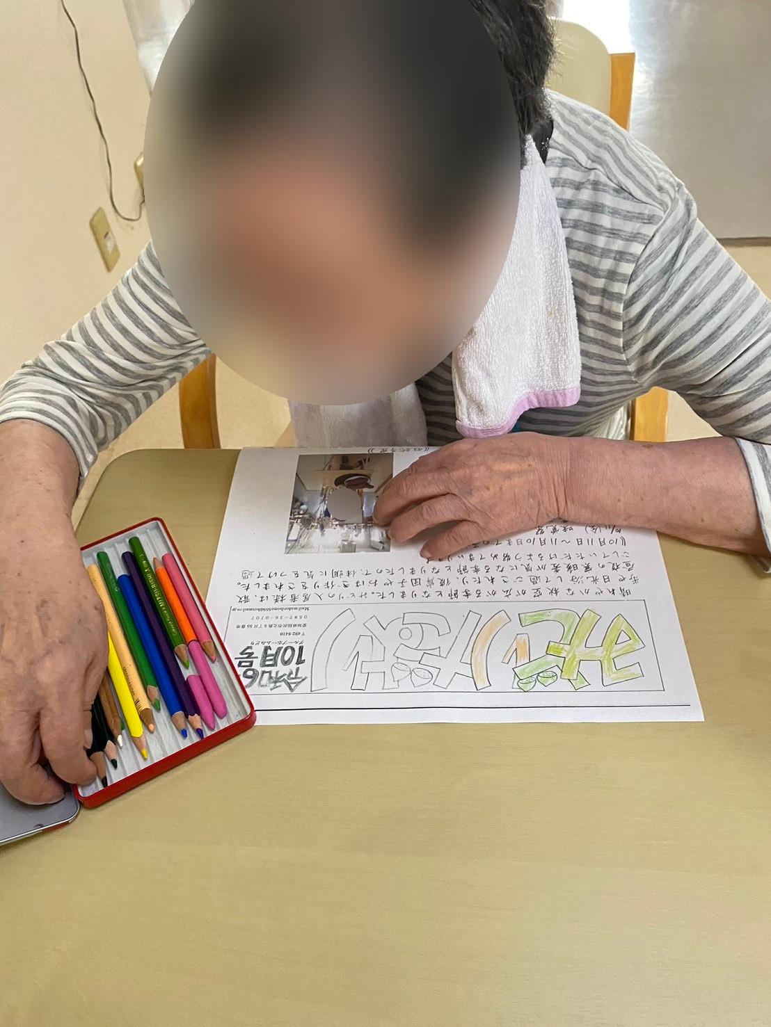 いつも入居者様に塗り絵や近況のお手紙を書いていただいています
