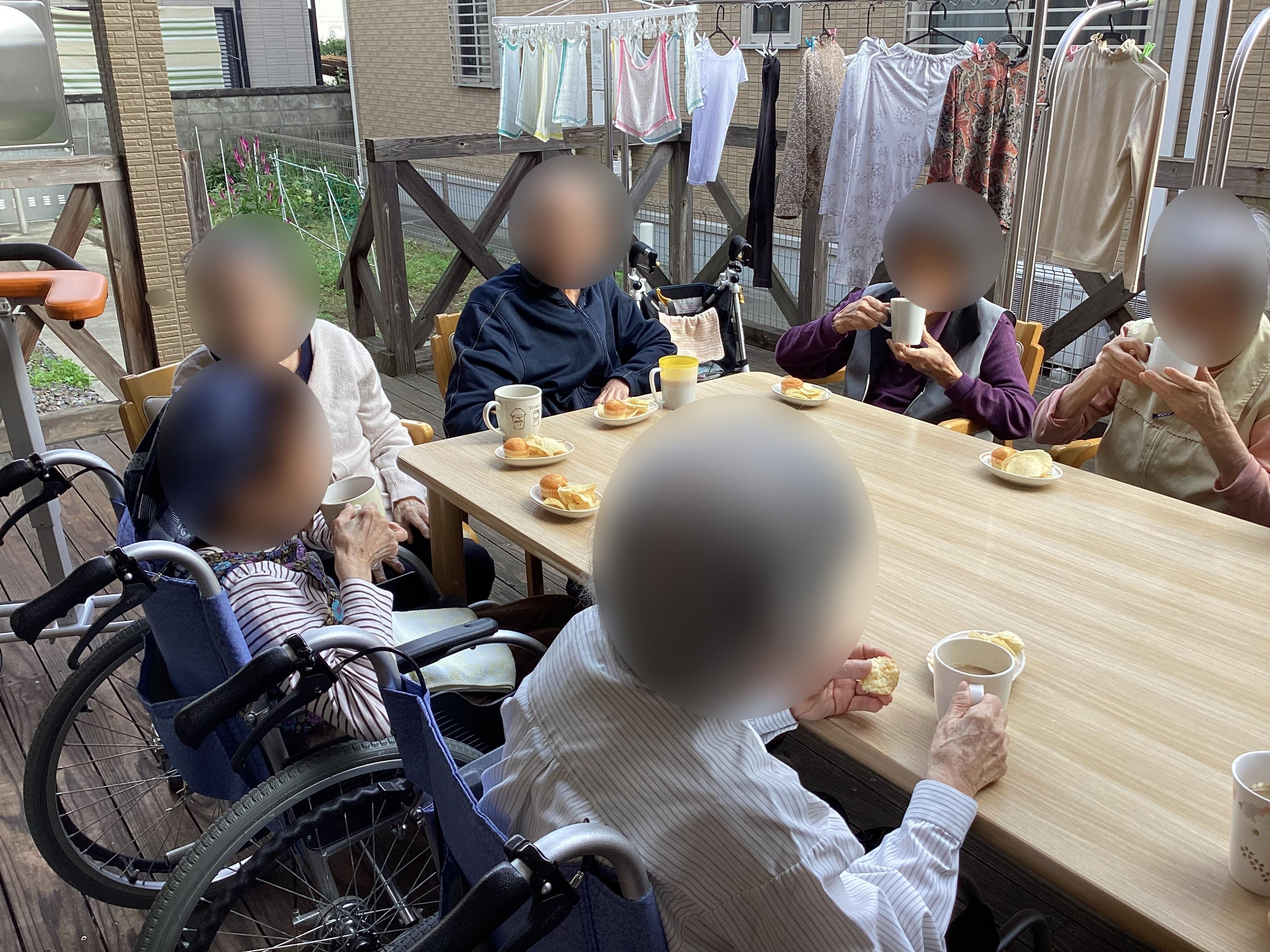 本日は、お天気が良いので午後からウッドデッキにて歌を歌ったり