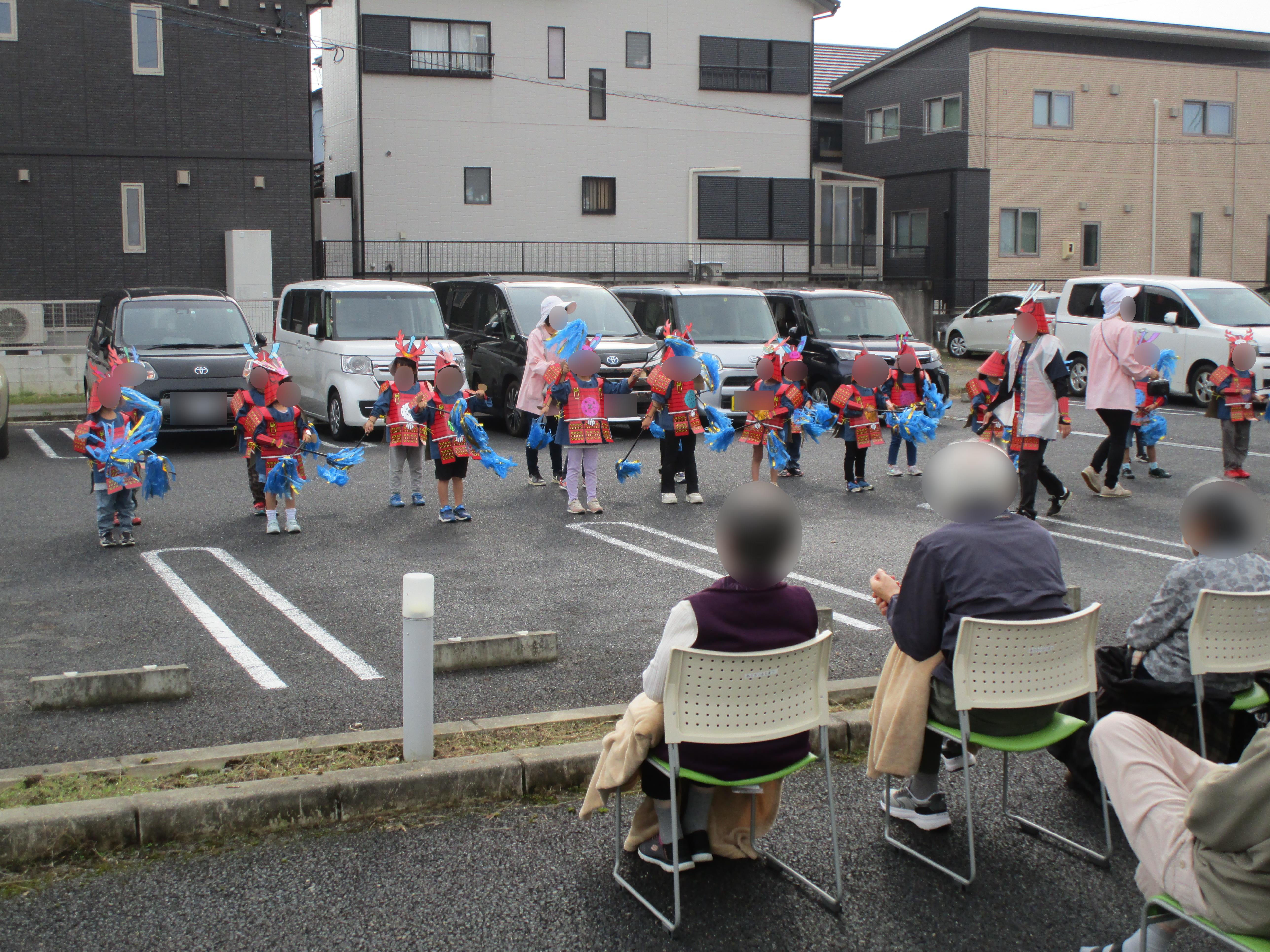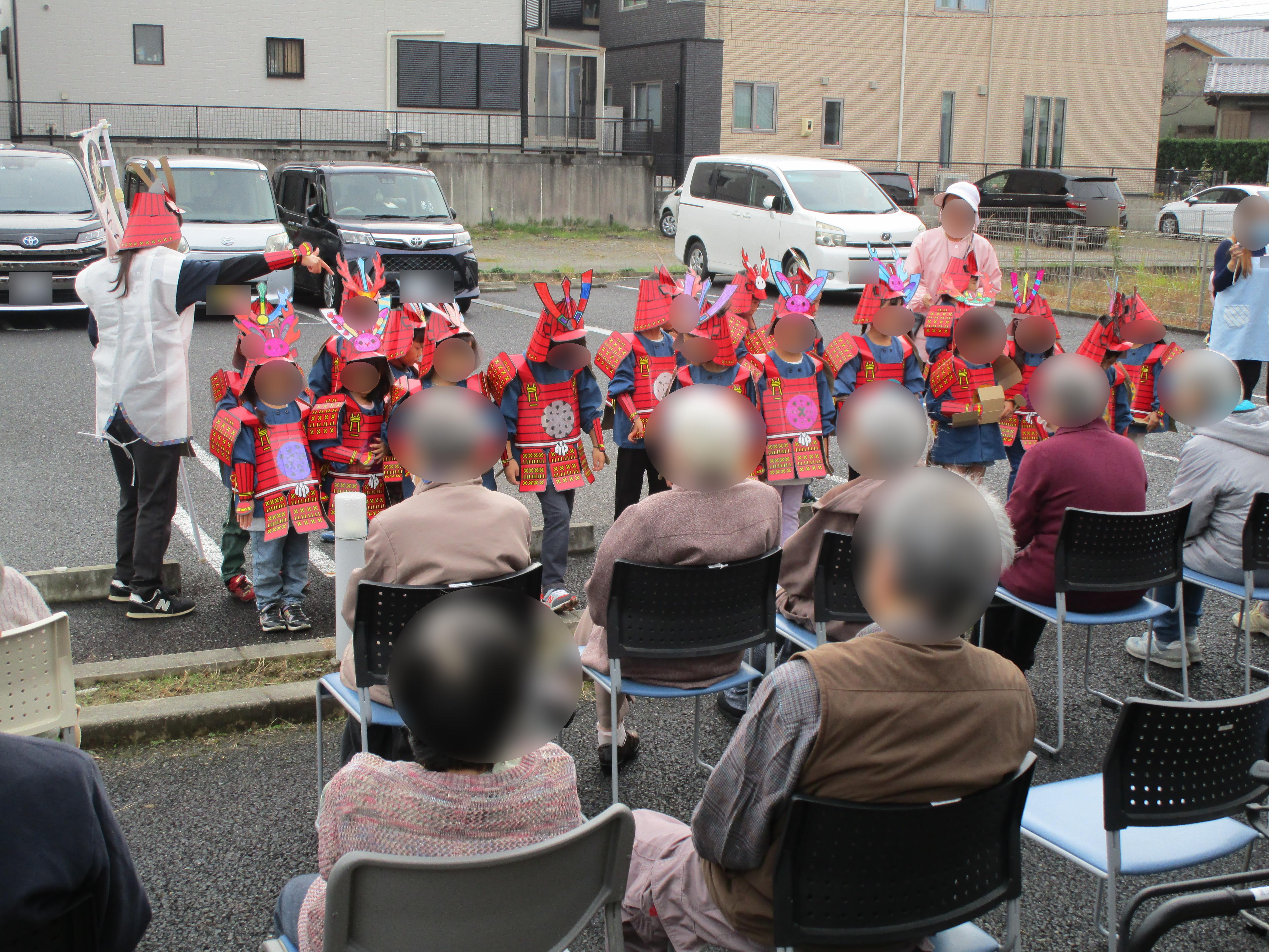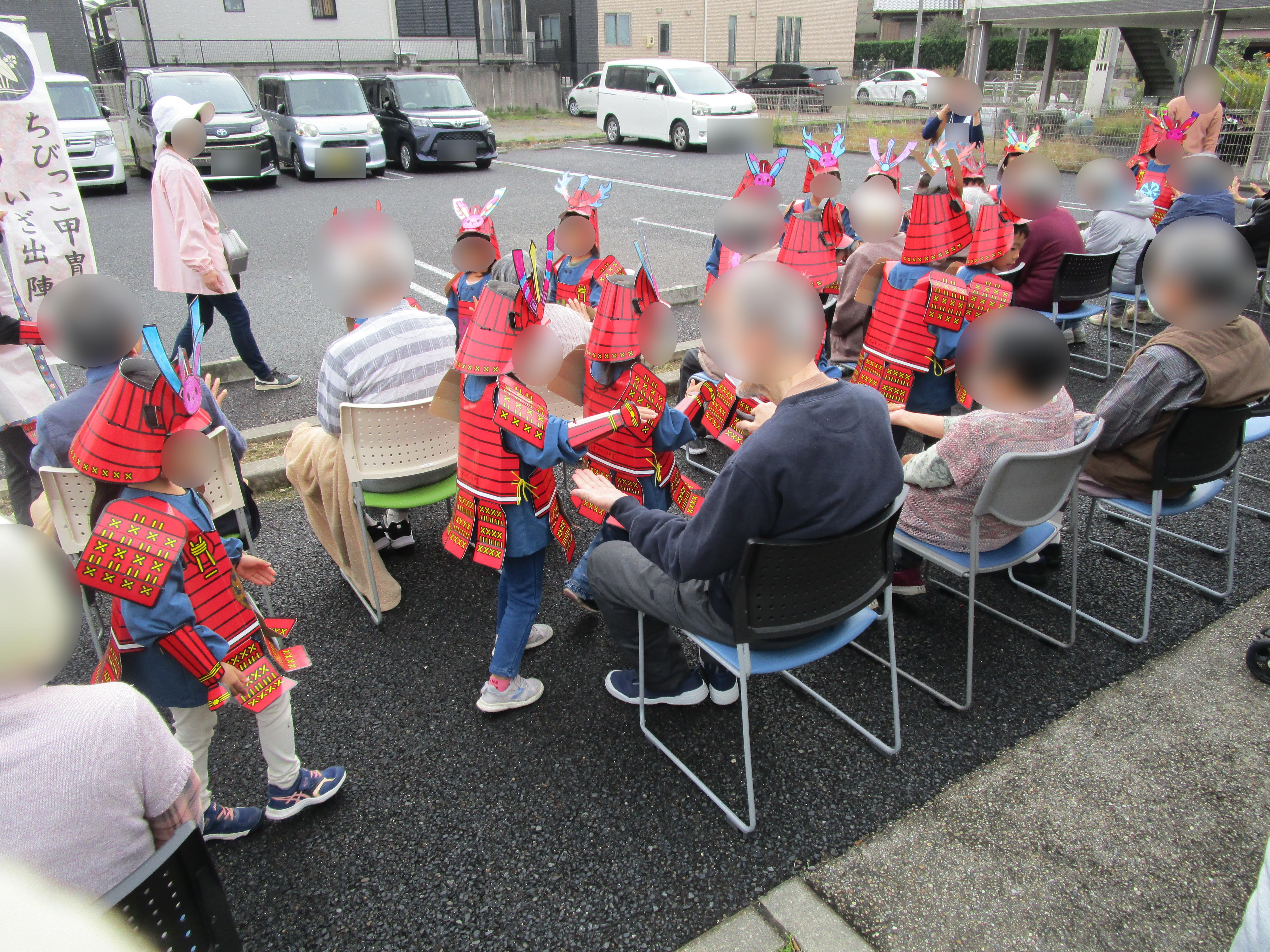 地域の幼稚園の子どもたちによる甲冑行列の写真です