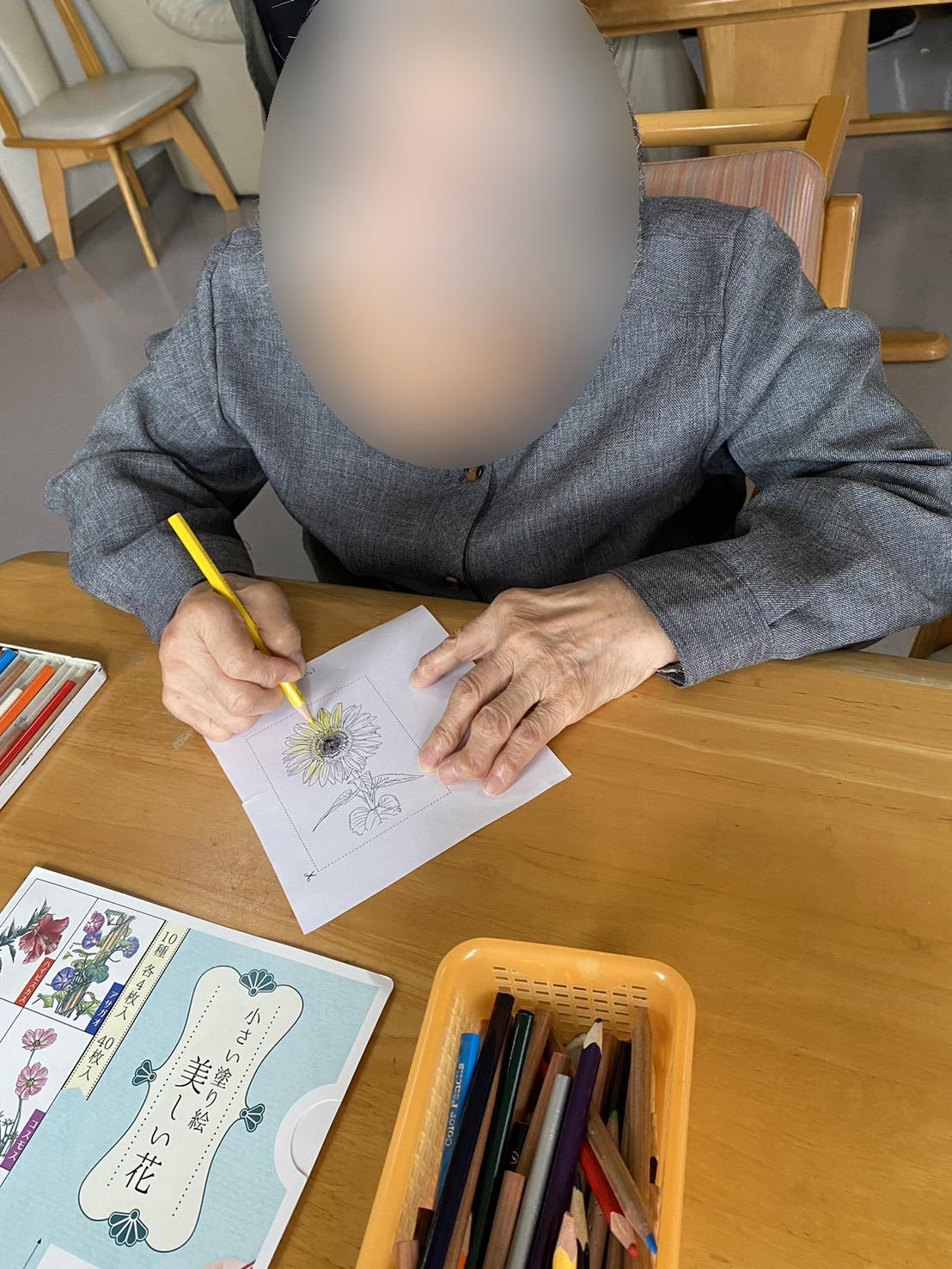 今日は美術の日で塗り絵に取り組まれていました