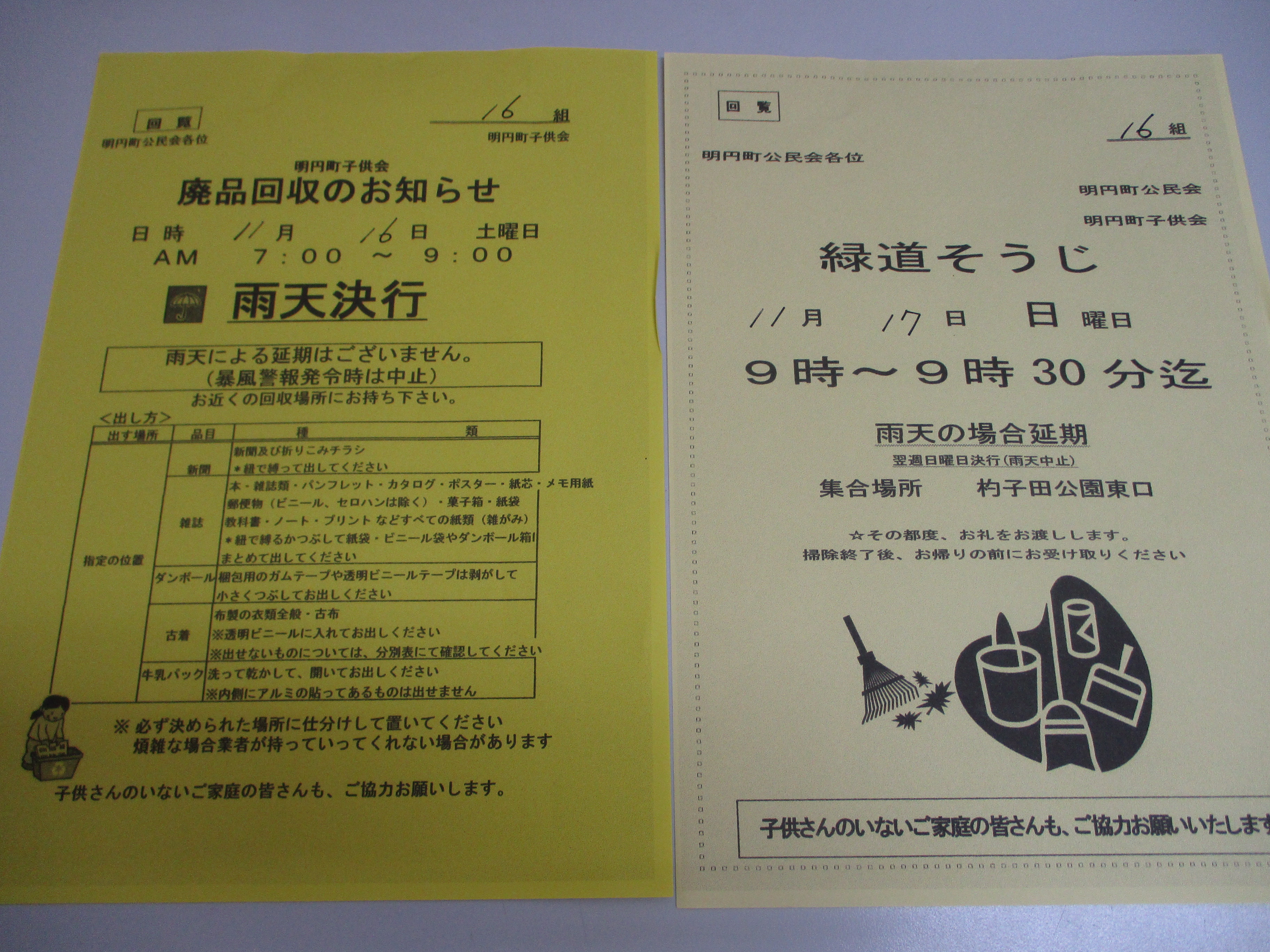 回覧板・緑道掃除